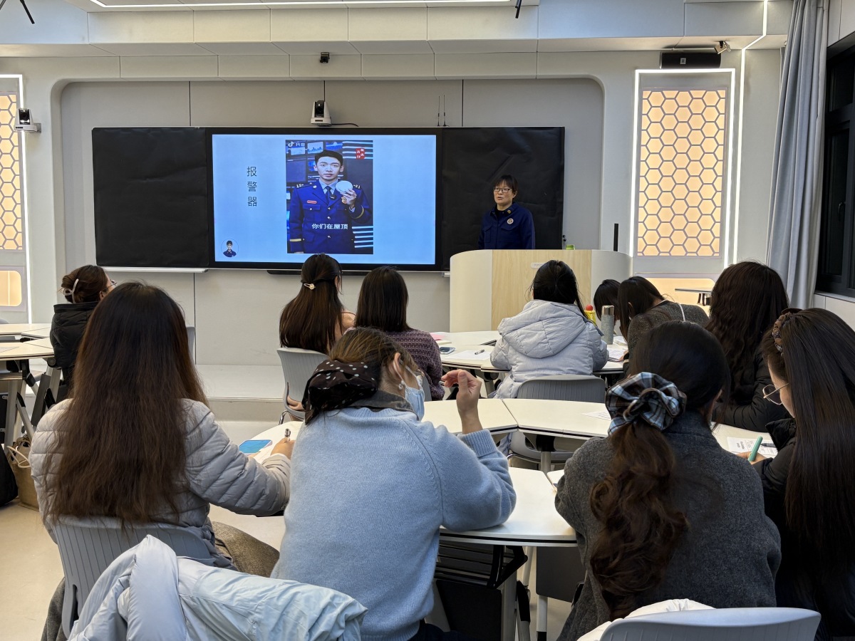 针对大家身边的高频风险,王老师重点聚焦电动自行车火灾,结合中原区本地真实案例发出强烈警示:“电动自行车电池老化、在楼道里违规充电,火势蔓延速度超出想象,30秒就能吞掉整个楼道!”她解释,这类火灾会产生大量高温有毒烟气,形成“烟囱效应”封堵逃生通道,后果不堪设想。“禁止电动自行车进楼入户、飞线充电,不是小题大做,是守护生命的底线!”一番话让教师们绷紧了安全弦。