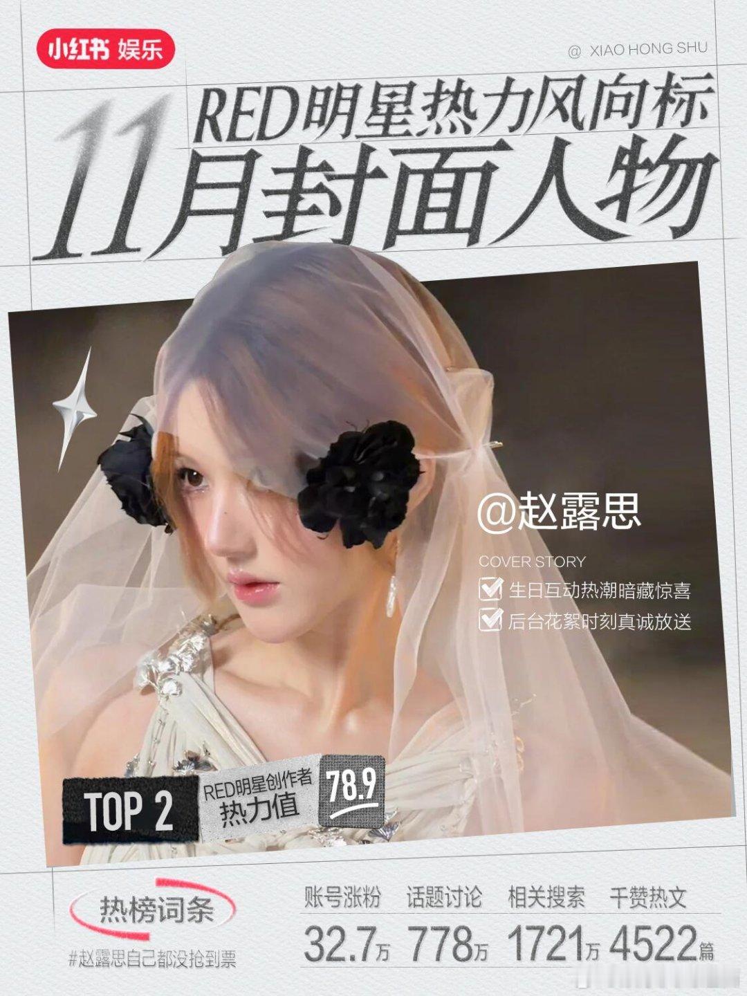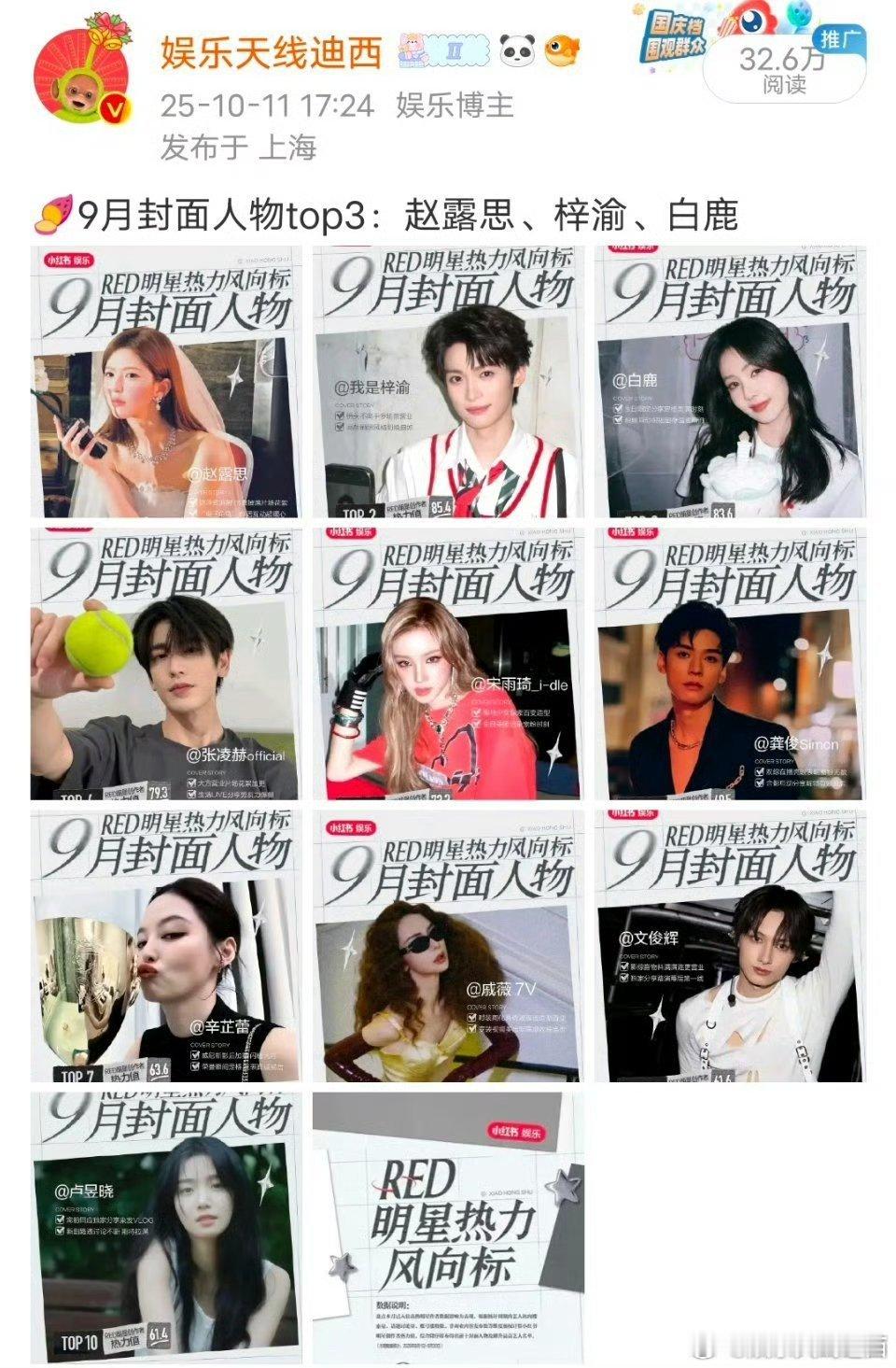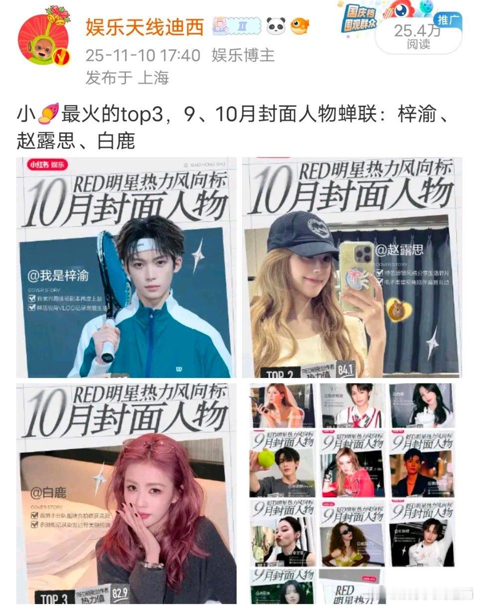 小🍠11月封面人物top3:梓渝、赵露思、白鹿top3真的很强,雷打不动