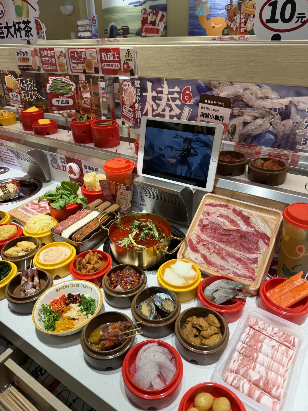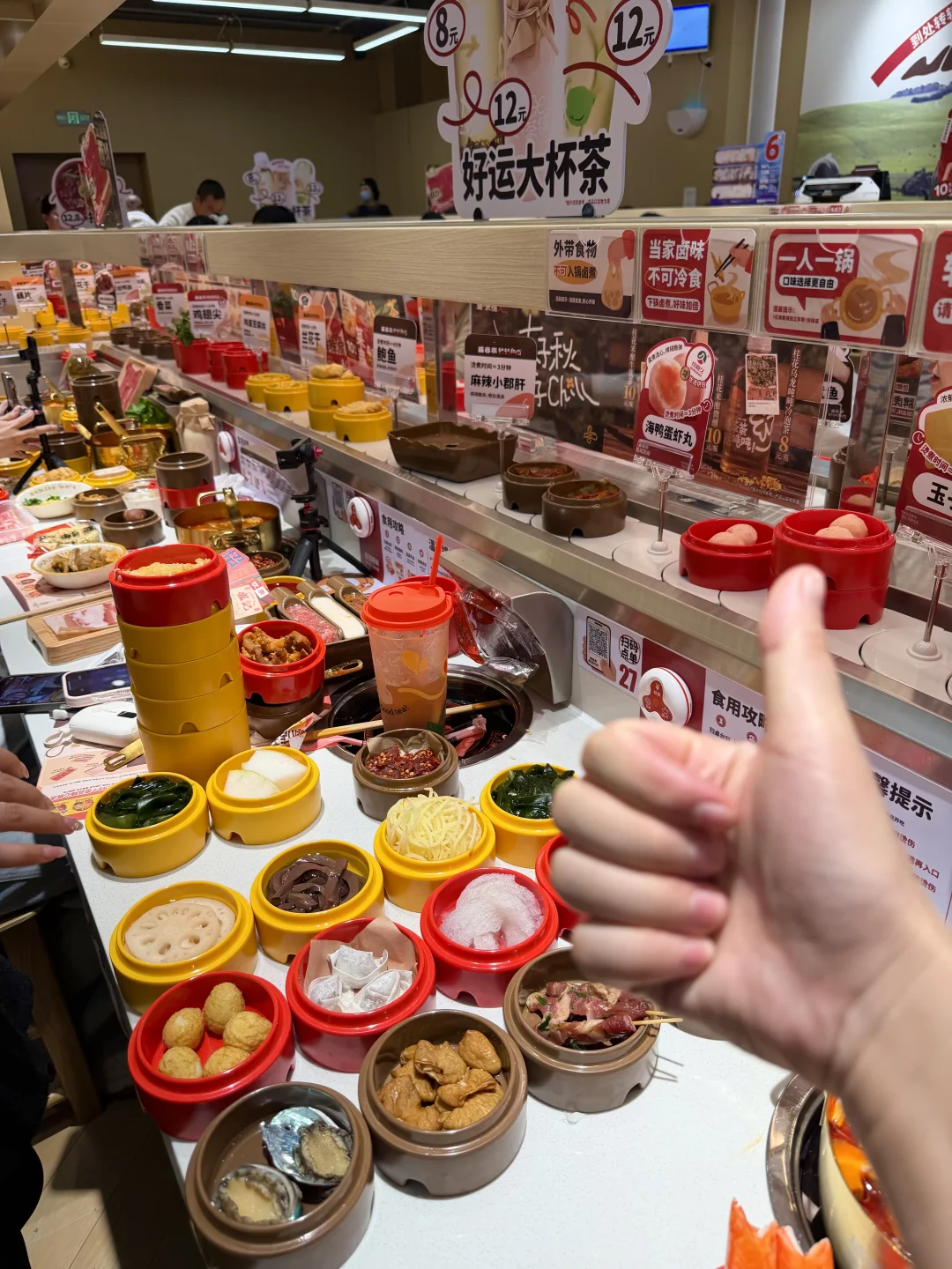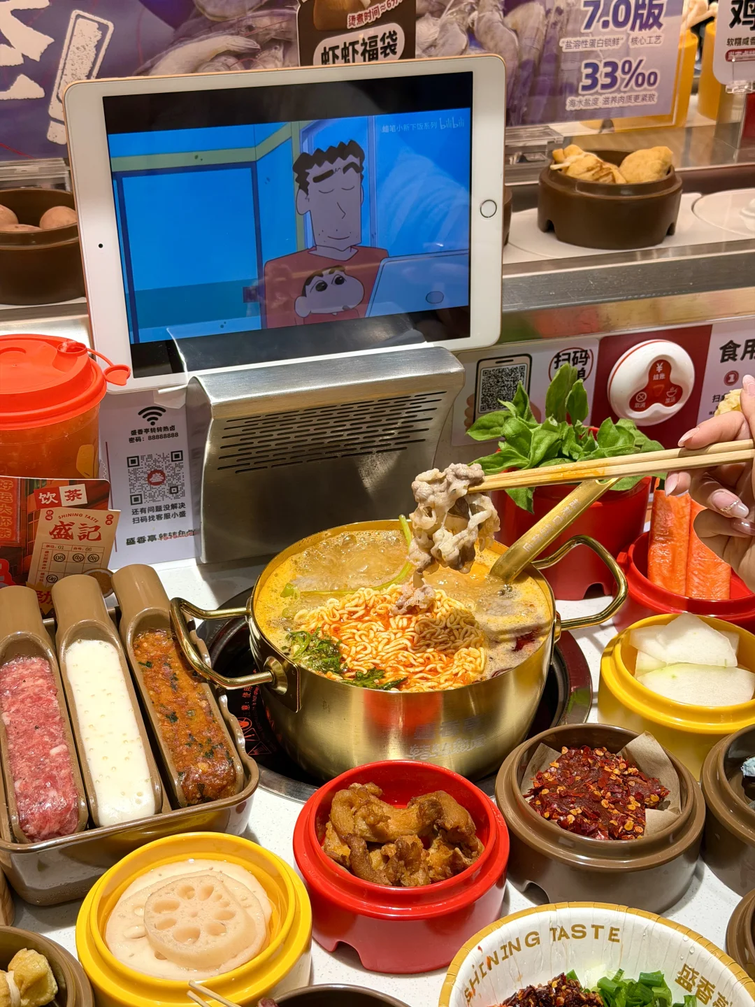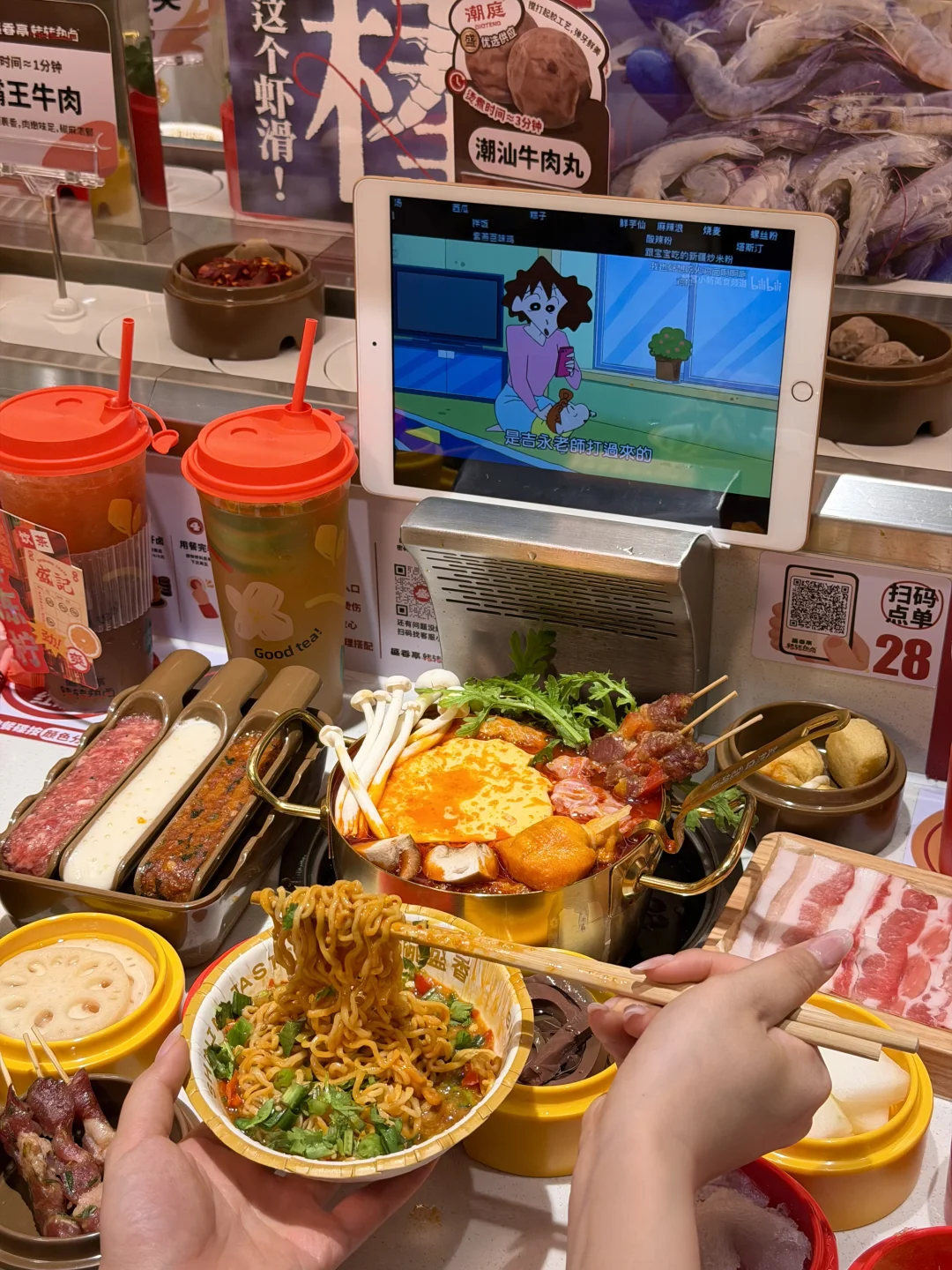 于都发达了…很喜欢的转转热卤小卤锅终于来我大于都了 2r一碟真的不要太过瘾了 一人食卤锅还可以DIY(关键是食材都好新鲜) i人也不害怕了 带了ipad边看边吃太过瘾了叭 推荐我每次都必点的 肥肠、虾滑、麻辣牛肉、小香肠、蟹柳、肥牛卷、方便面~