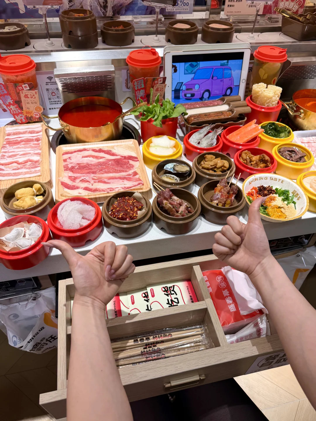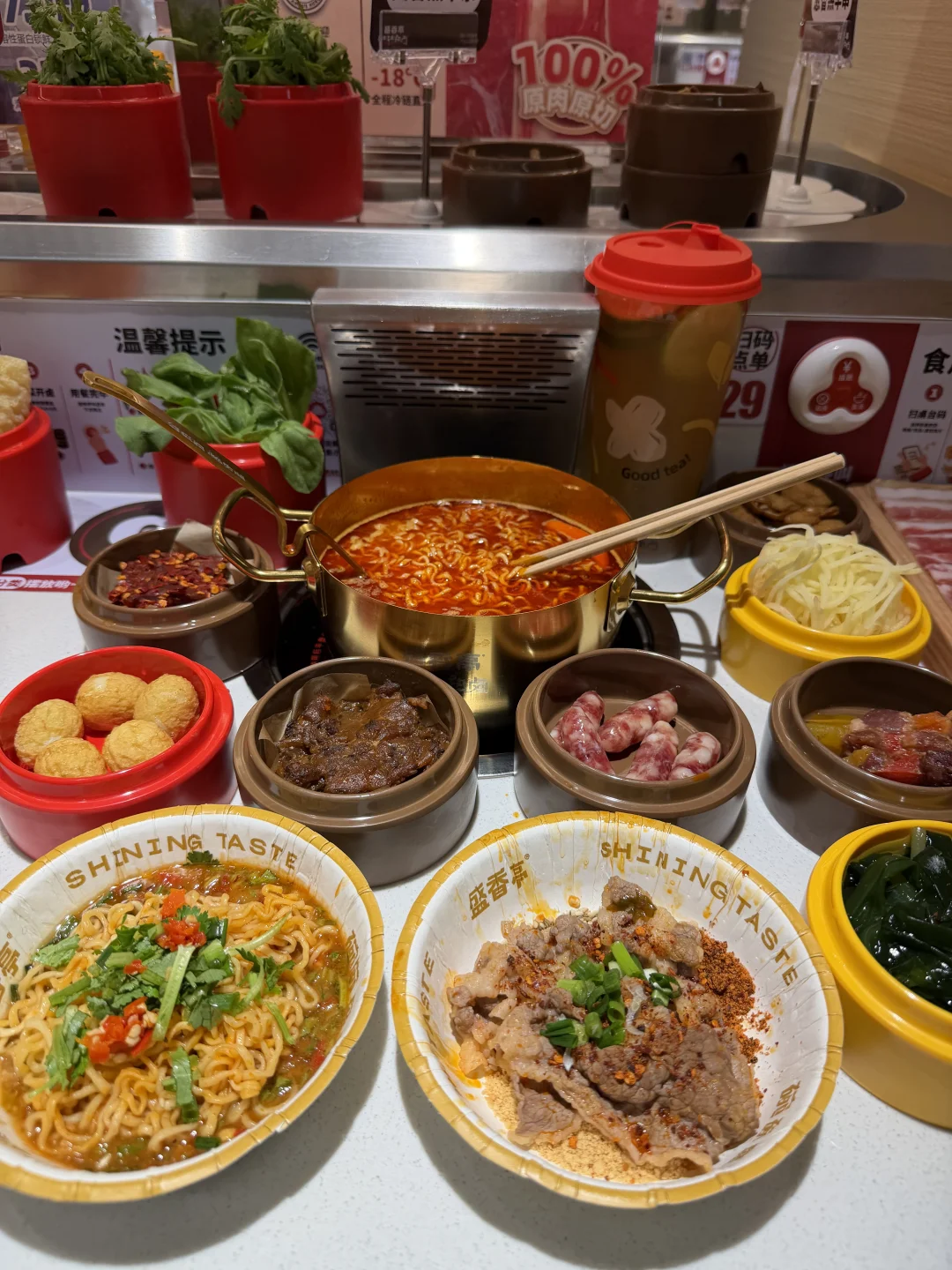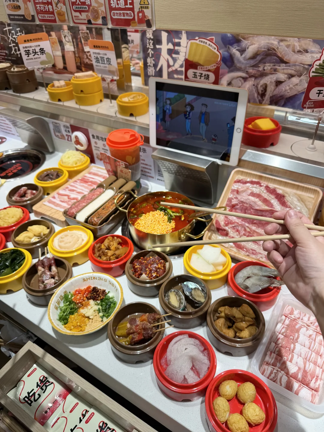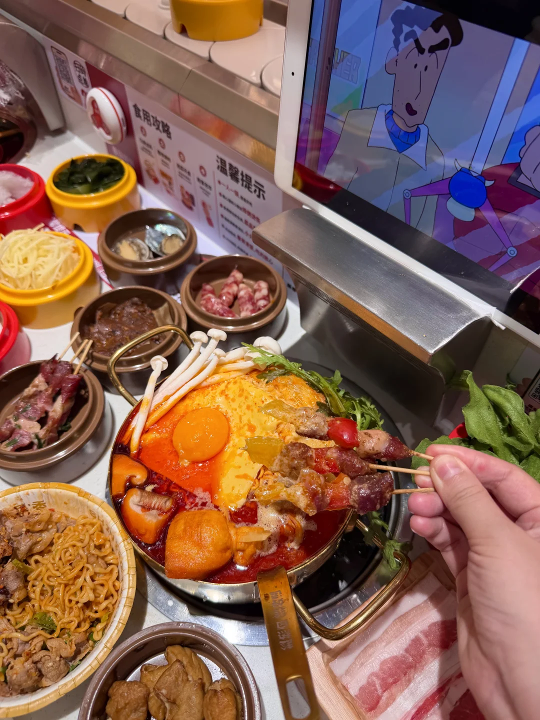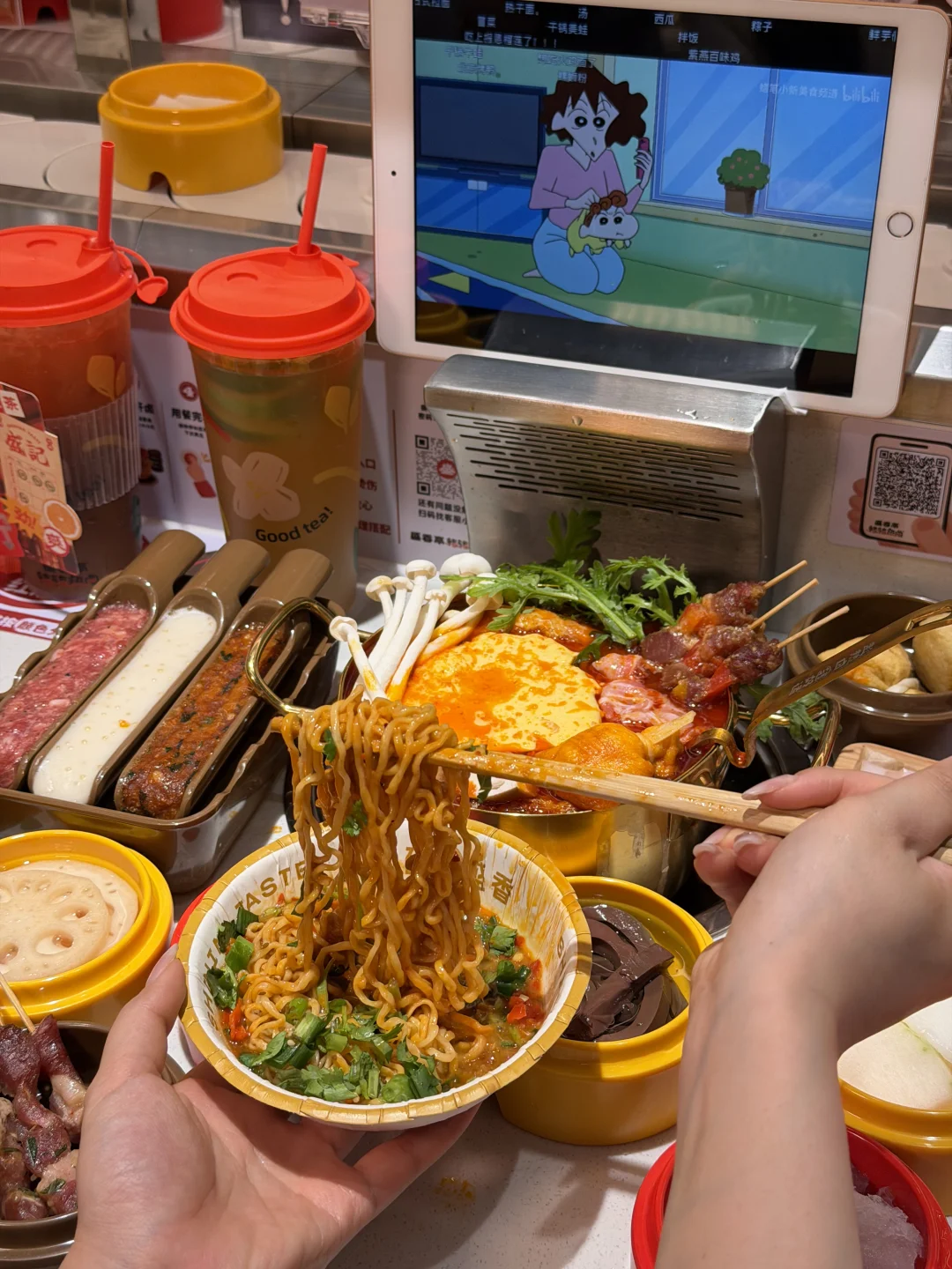 于都发达了…很喜欢的转转热卤小卤锅终于来我大于都了 2r一碟真的不要太过瘾了 一人食卤锅还可以DIY(关键是食材都好新鲜) i人也不害怕了 带了ipad边看边吃太过瘾了叭 推荐我每次都必点的 肥肠、虾滑、麻辣牛肉、小香肠、蟹柳、肥牛卷、方便面~