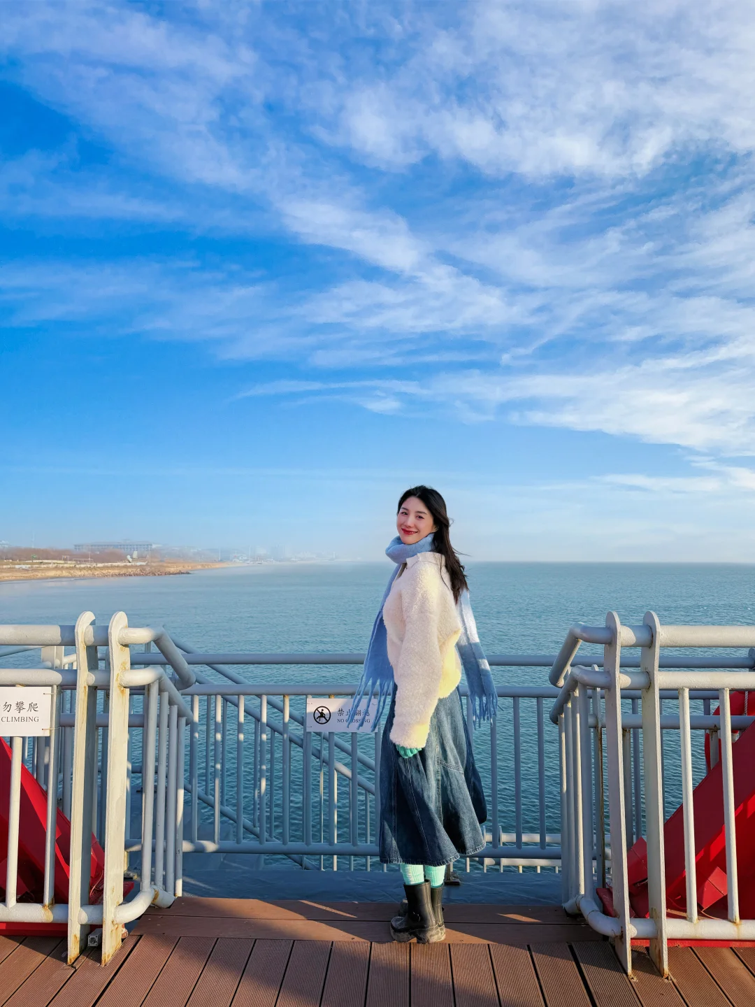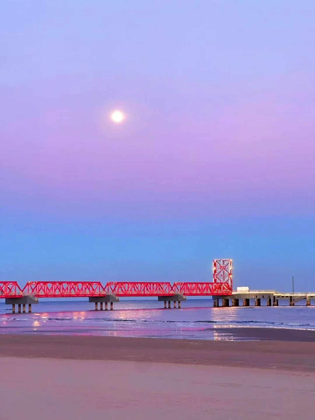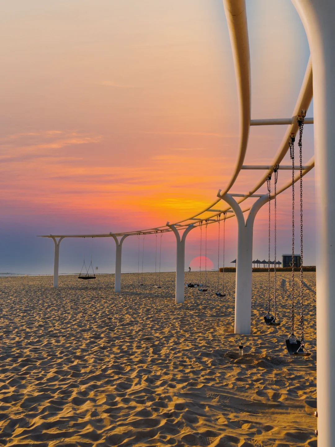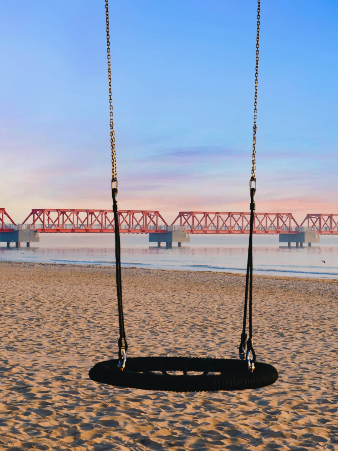 ✅ 沙滩秋千:取沙滩🏖️红色码头为背景,早上还有好多海鸥