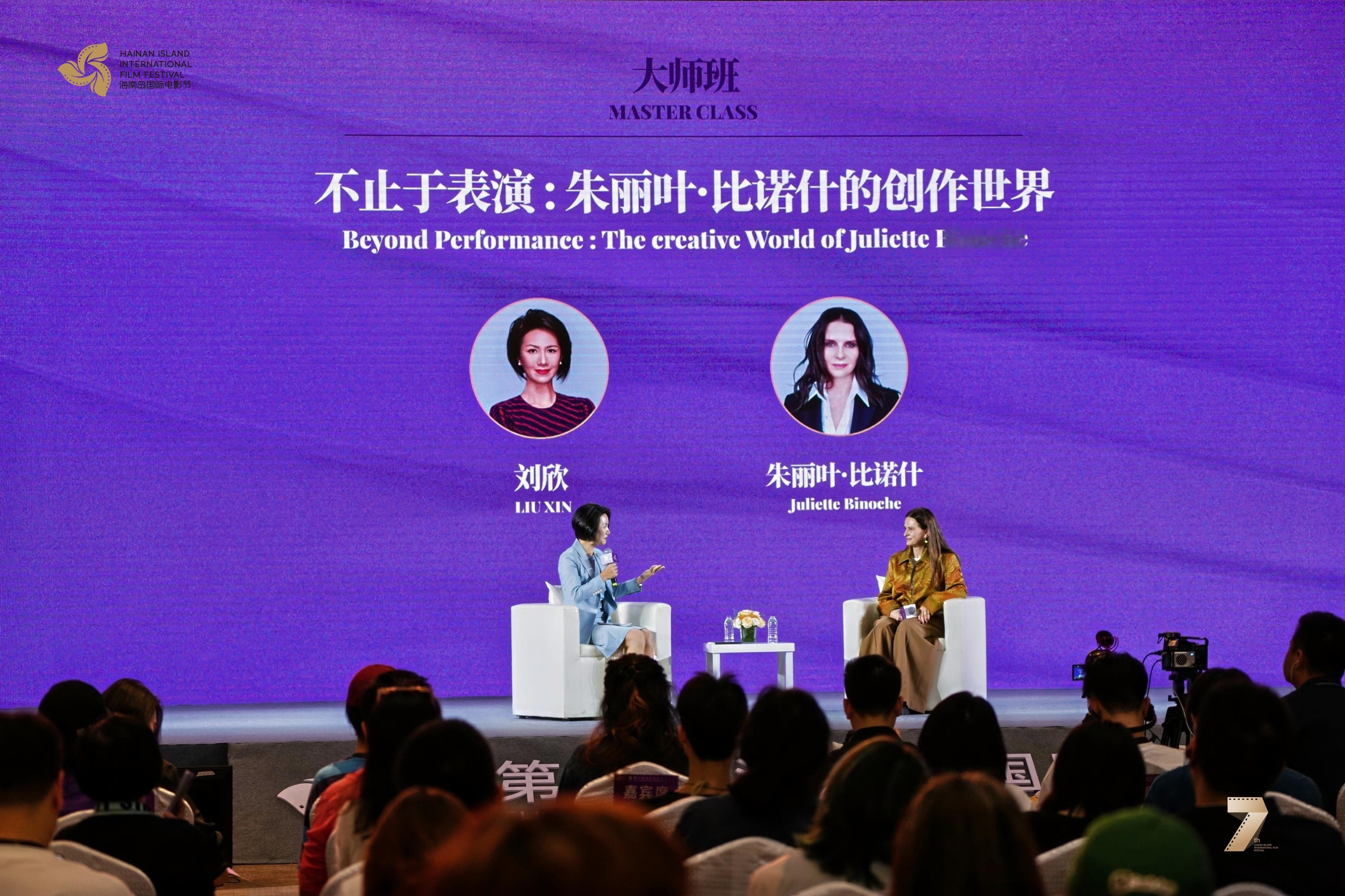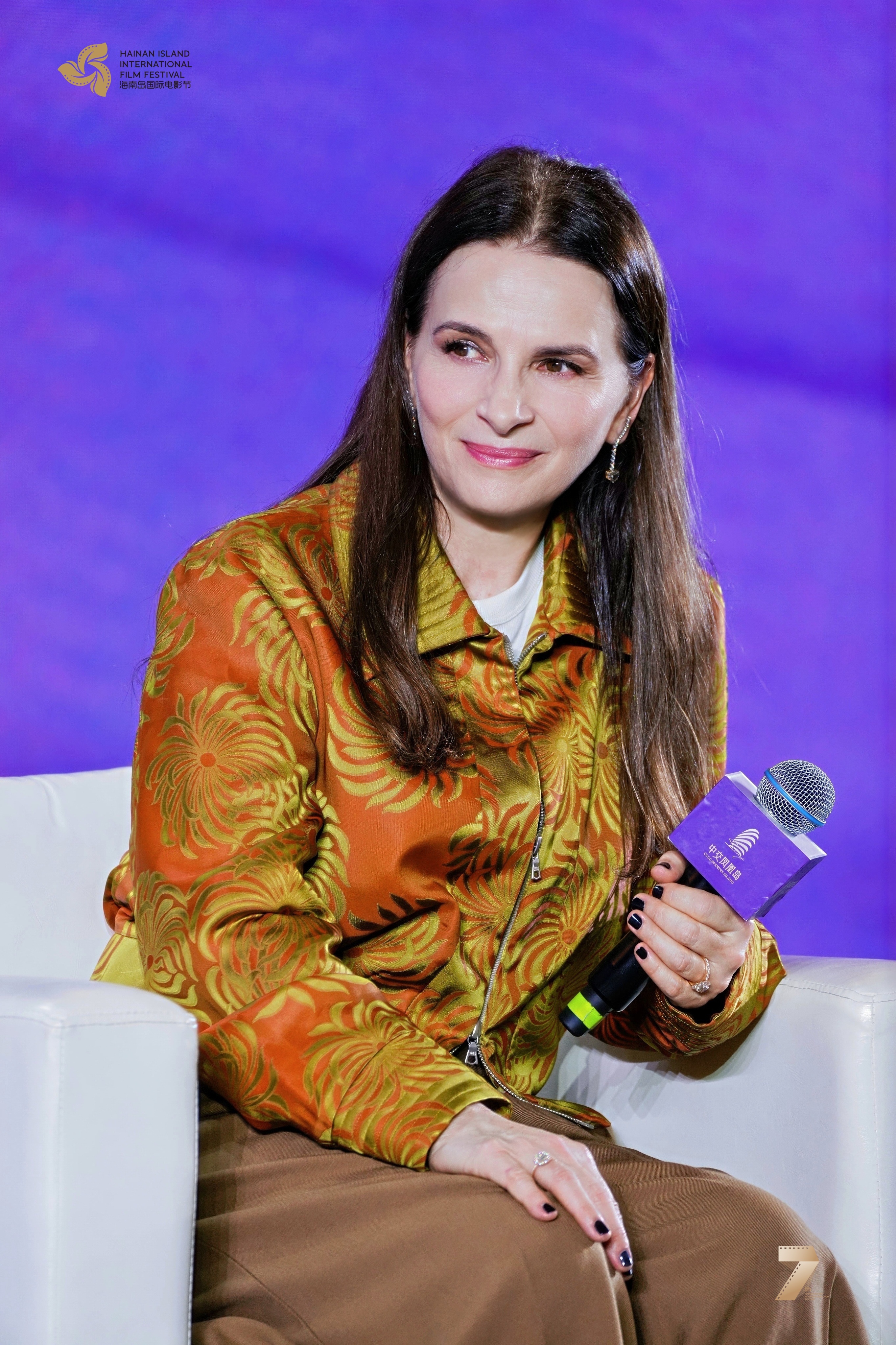 海南岛国际电影节朱丽叶·比诺什大师班「虽然叫大师班,但我更希望叫它一个小女孩的分享,因为我要从小时候来跟大家分享。在我还是十三四岁的时候,被送到了寄宿制学校,在这个学校非常的孤单,就激发了我想要表现,想要去玩耍感受喜悦的欲望,这种感觉从未离开过我。当你的生活中缺少某一样东西的时候,它就会不断地让你更想去汲取你所需要的东西,让你继续生活下去。正是因为我小时候的这些经历,这种感觉一直追随着我,让我希望去寻找一些开心快乐的时光,因为在学校里并不开心。在一路成长的过程中,我非常庆幸能在一个有艺术家氛围的家庭中成长。我母亲非常热爱艺术,她会带我去听音乐会,会大声朗读那些戏剧剧本,甚至自己会去上表演课。我年少的时候,非常享受参加一切和艺术相关的活动,能够在这些活动中去真实地表达自我。因为在这个班里面,有的时候没有足够多的男孩,所以我偶尔会在这些活动里扮演一些男性角色,我觉得非常有意思。他给了我更多的自由感,让我觉得自己可以以不同的形式存在。每次表演的时候我妈妈笑得非常开心,因为她觉得这是一个非常好的表达自我、激发自我渴望的形式。当我15岁的时候,我们一家人就搬到了巴黎。我们参加了一个课程,类似于一个演员学习的课程。后面我自己也参演了一部戏剧,母亲还来看了表演,我对妈妈说我已经找清楚未来的方向是什么了。我说我想真正地演戏,这个就是我的志向所在。 之后我在这个学校里面进行了进一步的培训,我也通过选角和不同的试戏遇到了非常多的演员和导演,跟各种不同的导演进行合作,从一种风格切换另外一种风格。每次跟新的导演合作就像是打开了一本新的书,我翻开了这本书进入了一个全新的世界,所以你知道这对于我来讲是一件很幸运的事情。每次跟新导演合作我都觉得非常幸运,我是被他们选中的人,我觉得这是生活中的惊喜,打开了全新世界的大门。有时候我在想,我自己的真我,我的本我是什么样子的,我可以通过这个角色去展现出来这种真我或本我吗?这个更像是把自己的全身心交付给那个角色,进一步去诠释这个角色,所以意味着我要让那个角色走进我本人的内心,我需要跟这个角色建立了真实的联系。我的标准就是遵从我的内心直觉,当我在去阅读剧本的时候,我希望这个剧本能让我感动,能够触及我的内心。我希望能够通过这个剧本进行想象,去激发我的创造力。我认为进入电影行业就像是一场冒险,在进行创作的过程当中,你永远不知道最后的成品是一部好电影还是一部烂电影,你只是在去做你喜欢做的事情。所以你要跟所有人建立一种联系的,不仅仅是和演员和导演,还包括所有的技术人员。我之前拍过一部影片,在拍摄初期的时候,我们是在室外进行拍摄的。导演会坐在房间里面,然后通过一个电视来看我们在户外的表演,我就向他表达了我的困惑,我告诉他如果我们物理距离这么远的话,我很难跟他建立一个艺术关系,因为他离我很远。如果这样子的话,我没有办法进入到我最好的状态。最后他的选择就是走到了摄像机旁边,陪着我完成了表演。他后面告诉我,这是他在整个职业生涯当中最好的体验,因为他回归到了自己对电影拍摄的热情。我觉得自己是很幸运的,对我自己来讲做选择不是容易的事情,尤其当你有了家庭孩子之后,意味着你在整个艺术创作过程中,需要带着全家人在世界各地搬家,在新的地方开始生活。这是一件很难处理的事情,但与此同时,我也想跟很多来自不同背景的艺术家在一起去进行表演演出,这一直都是我所追求的事业。我觉得自己在这个过程当中受到了非常多的保护,包括前面向大家讲到的,很多角色是出于本能和直觉,一直有这样的一个能量力量笼罩着我,感恩生活中发生的事情也是非常重要的。」
