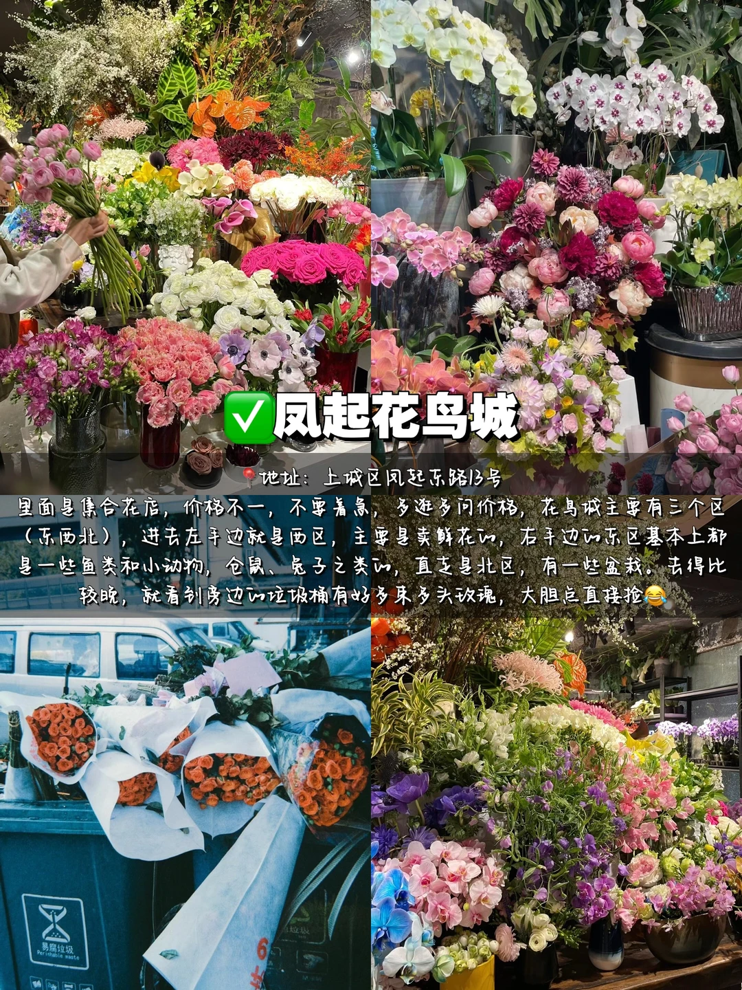 💡攻略:分东西北三区:西区鲜花、东区鱼类/宠物、北区盆栽,傍晚去拼运气,垃圾桶旁会有摊主扔的多头玫瑰,大胆捡