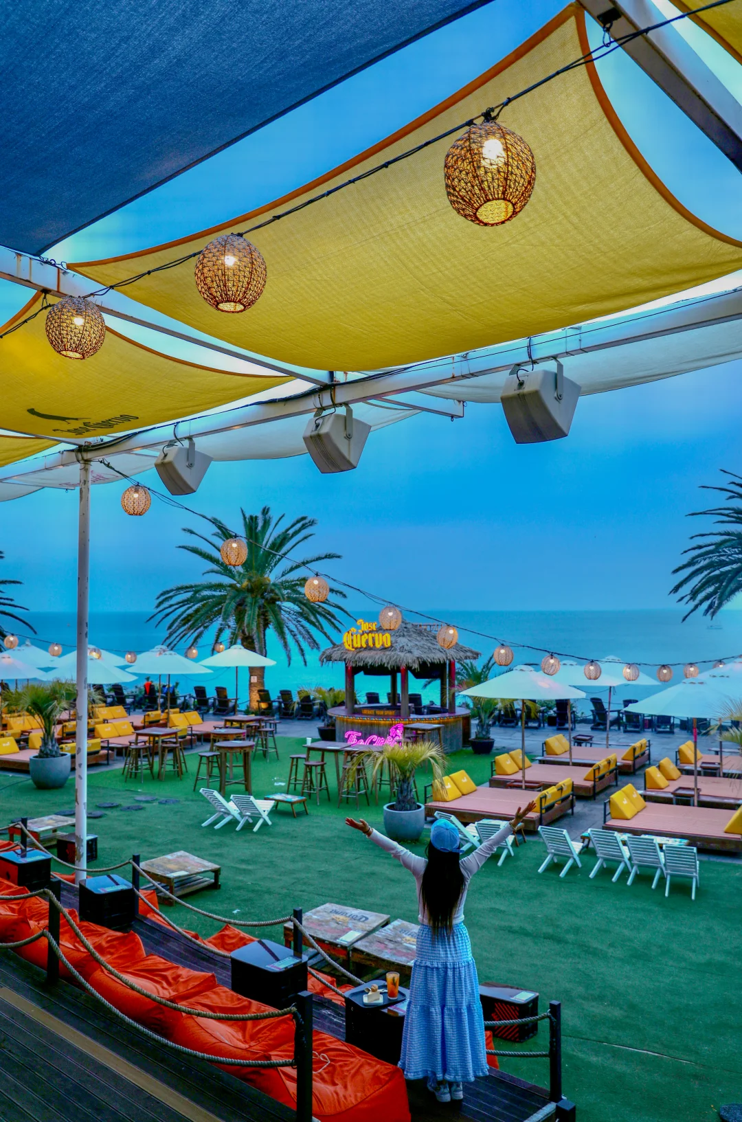 蓝白相间的沙滩超治愈,踩沙踏浪拍照巨出片,傍晚的日落绝了~