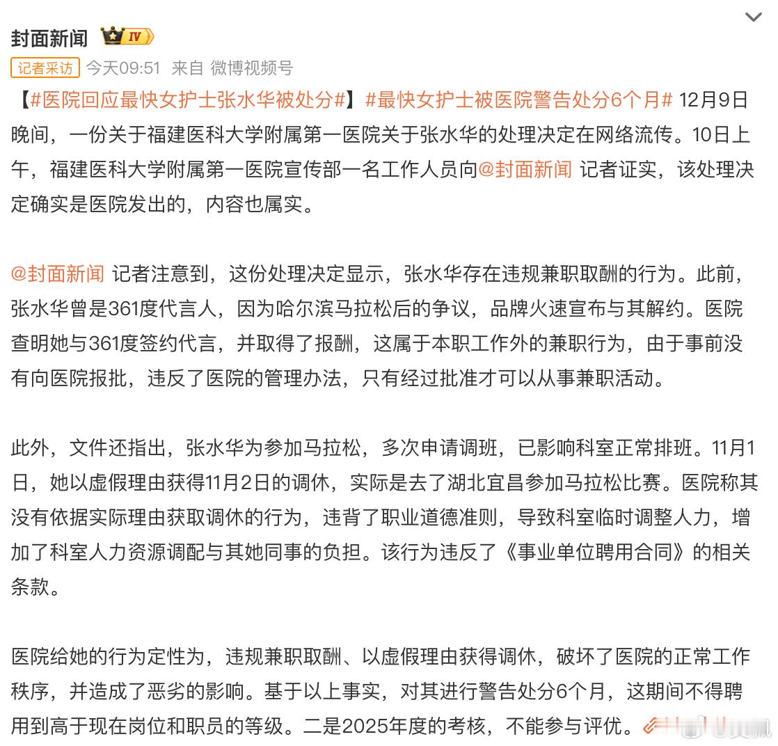 这回应还是不大服气啊自己50天跑马拉松赚了20万,你同事却得周末给你顶班,既要又要不好吧?!如果你是她医院的同事,你会怎么做?最快女护士被医院警告处分6个月最快女护士违规兼职取酬最快女护士以虚假理由调休参赛