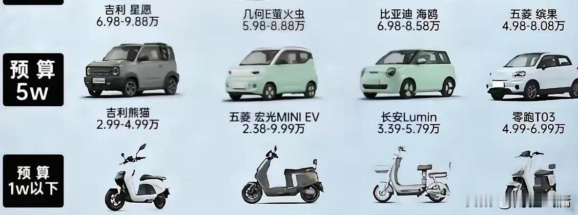 预算5万以内的车怎么选择?家里有小孩子,电动车带不了两个人怎么办? 新国标出来以后,电动车注重安全性,但是去掉了舒适性。 很多家庭家里有两个小孩,毕竟国家鼓励生宝宝, 实在不行我们可以去考个驾照,买一个5万以内的代步车。 5万以下电动车值得买吗?绝对适合。 尤其是这三类家庭: 预算有限的刚需家庭:2.99万起的吉利熊猫等车型能低成本解决通勤。 三四线城市接送孩子的家庭,小巧车身停车便捷,部分高配带儿童安全锁更安心;作为家庭第二辆车的用户,超低使用成本可分担日常出行压力。 优势很突出:每公里电费不到5分钱,保养费仅为燃油车1/3;车身灵活,城市穿梭无压力。 但短板明显:续航120-210km,冬季缩水40%,仅能满足短途;部分车型缺ESP、用鼓刹,安全性待提升。