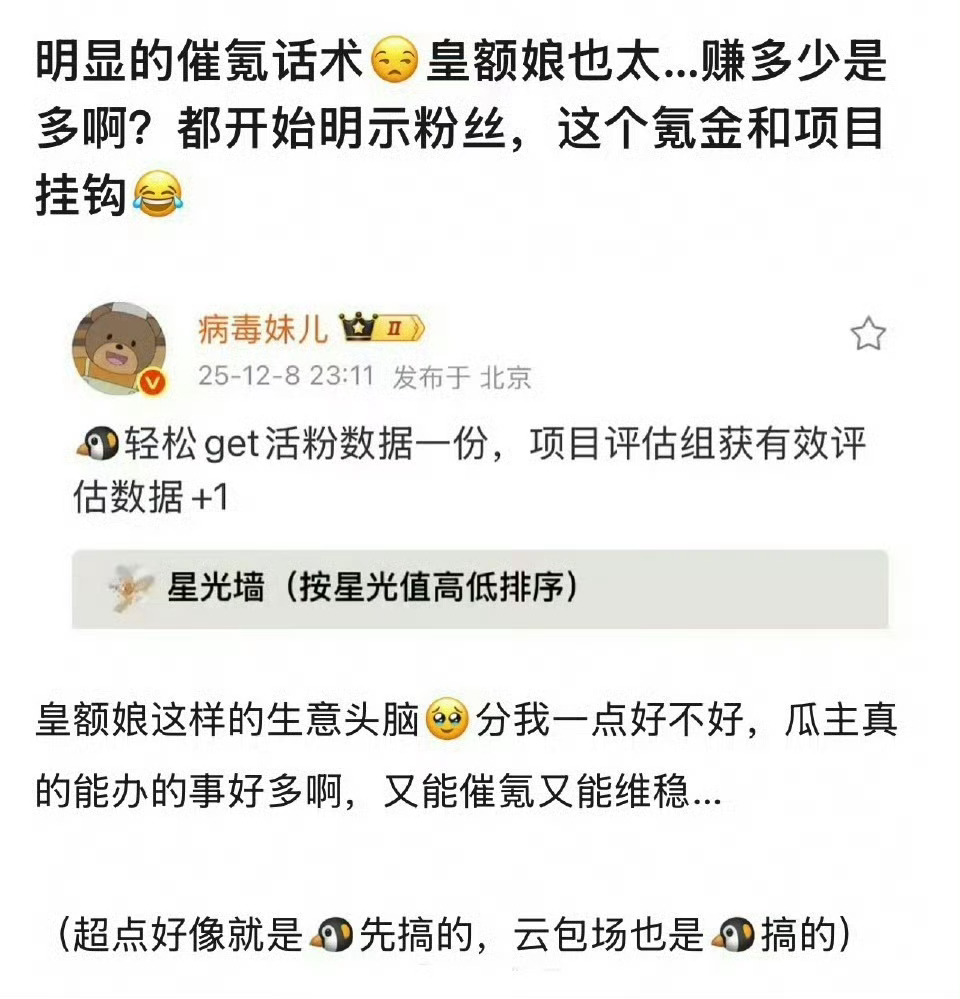 你鹅出来催氪,说星光大赏的韭菜榜和以后的项目评估挂钩