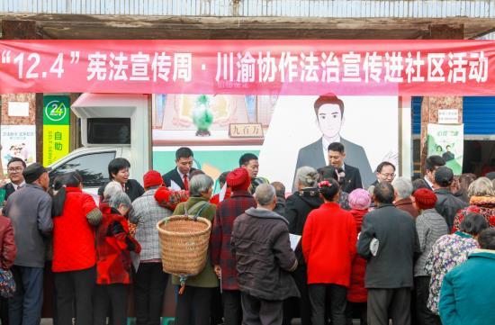 11月28日,广安中院机关第三党支部联合重庆一中法院立案庭、办公室党支部及川渝两地渝北、江北、邻水三家基层法院立案庭党支部以“12.4”宪法宣传周为契机,来到川渝高竹新区茨竹镇中和社区,开展法治宣传进社区志愿服务活动。