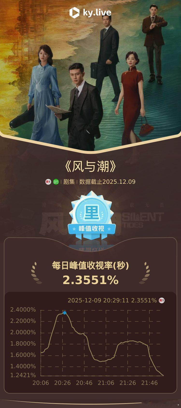风与潮首日cvb破372822年代大戏《风与潮》首播告捷!CVB收视3.171%拿下央视一套下半年首日第一,酷云峰值破2.35,真实历史改编+质感服化道,凭实力收获全年龄段喜爱。
