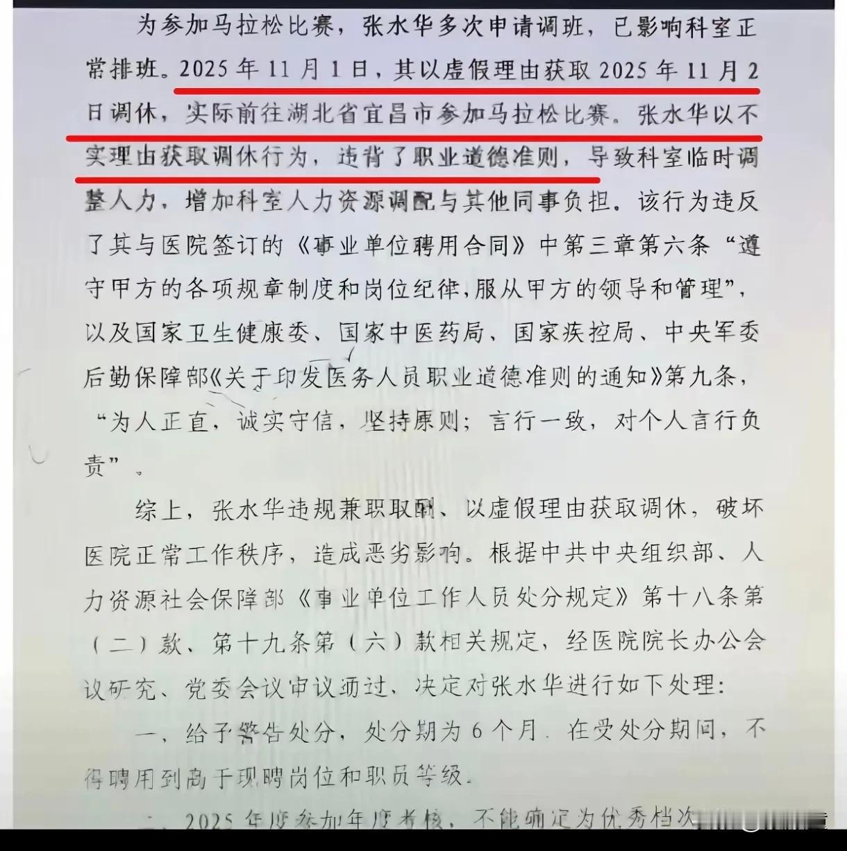 论情商的重要性! 从张水华的处分来看,她的错误算不上错误,领导、同事不较真,什么事情都没有! 张水华后面缺一个情商高的人指点一下。 拿奖金了,公开感谢一下领导,同事,拿一部分钱,给领导、同事买一些礼物,话说好听点,不仅啥事没有,甚至有可能得到表扬,毕竟也挺励志的! 可她偏偏没有,这样闹的都不愉快,大众也没有因为她马拉松成绩好,站在她的角度!