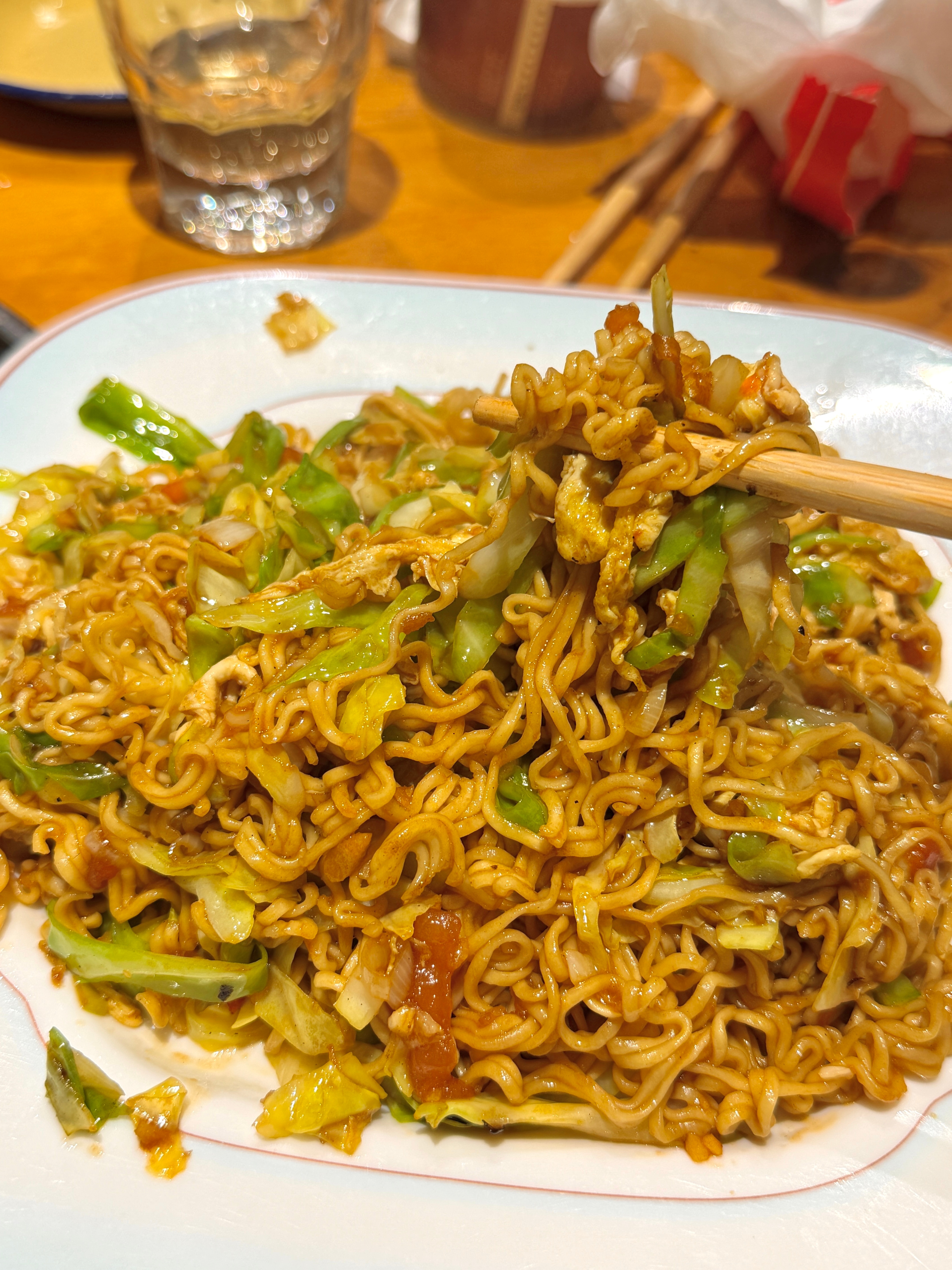 大红门的炒方便面又变了这次连火腿肠都没了,最初他家的炒方便面带点汤,加了醋炒,又爽口又好吃,算是独一份的口味,每次聚餐都点两份。现在又油又咸,白月光一去不复返。