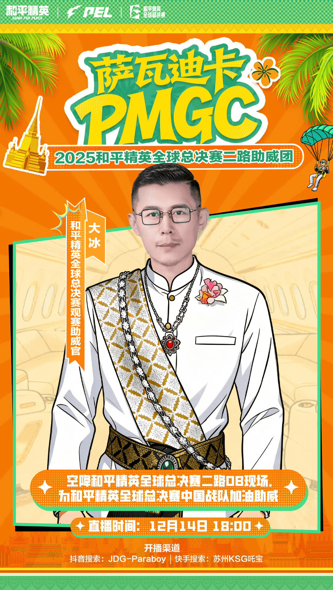 [铛铛铛铛]重磅嘉宾他来啦!他就是我们“2025和平精英全球总决赛观赛助威官”——大冰老师!12月14日晚,锁定2025和平精英全球总决赛二路直播间,大冰老师将用独特的“冰式视角”和大家一起体验总决赛,为和平精英全球总决赛的中国队伍加油助威!现场更有超多豪礼送不停,别走开,精彩节目马上就来,我们总决赛不见不散!