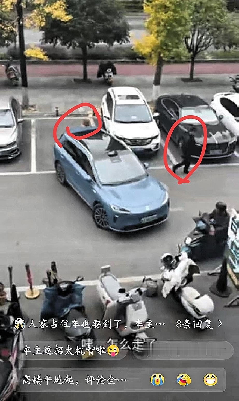 女子人肉占车位,大家平时遇到这种情况,要么下车理论,要么只能无奈开走,可过来停车的一位大哥,做法却不一样。 他开着车到车位前,看到大姐站在里面,没下车,也没说话,就慢慢把车横在了车位正前方,刚好挡住车位入口。 然后他拔了钥匙,揣着口袋,不紧不慢地往小区门口走,全程没跟大姐说一句话。 大姐一开始没当回事,觉得大哥就是赌气,可等了几分钟,自家的车真到了路口,她才慌了。 大哥的车挡在车位前,就算她占着车位,自家车也根本开不进来。她在原地急得转了两圈,看大哥越走越远,只能赶紧追上去,想让大哥把车挪开。 结果她刚离开车位没几步,身后的车突然“嘀”了一声,她回头一看,大哥那辆车自己打了方向,稳稳地倒进了车位里。原来大哥早就设置好了自动泊车,刚才把车横在前头,就是等着她离开呢。 等大姐追出去没找到大哥,回头看见车位已经被占,只能默默走了。其实这事儿最难得的,不是大哥赢了车位,而是他没跟大姐硬碰硬。公共车位本就是先到先得,人肉占位本就不合规矩,可真遇上了,吵也没用,闹起来更没必要。 这位大哥没红脸没费口舌,用简单的办法守住了规矩,还没让矛盾升级。遇到不讲理的人,与其硬碰硬伤和气,不如像他这样,用点巧劲,既维护了自己的权益,又不失风度,这才是最聪明的做法。