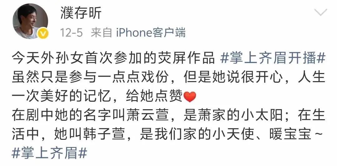 好家伙,人家濮存昕只是推荐一下自己家的暖宝宝,聂远呢?火力全开猛推的是11岁的聂子一老师(聂远他闺女)…… 你推荐你闺女,大家理解了…… 但为什么11岁的她变成某某老师了[抠鼻]? 这谁的老师? 说实话,从王菲的闺女、小沈阳的闺女、董璇的闺女到佟丽娅的儿子……,大家已经接受艺人二代承接父母资源进圈这个事了,不管是丑孩子还是美孩子,观众没法阻止,只能选择看或者不看罢了,但是,你不能给大家一上来就摊派一个“老师”吧🤷‍♂️[尬笑][黑线]
