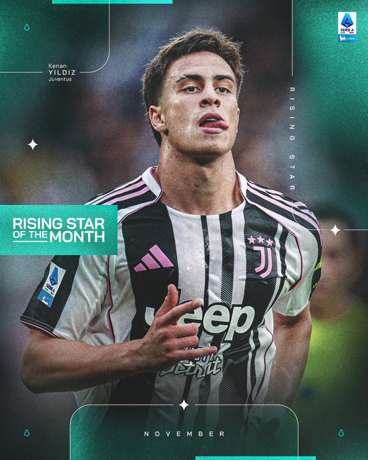 直播吧12月10日讯意甲官方消息,尤文前锋伊尔迪兹获联赛11月新星奖。