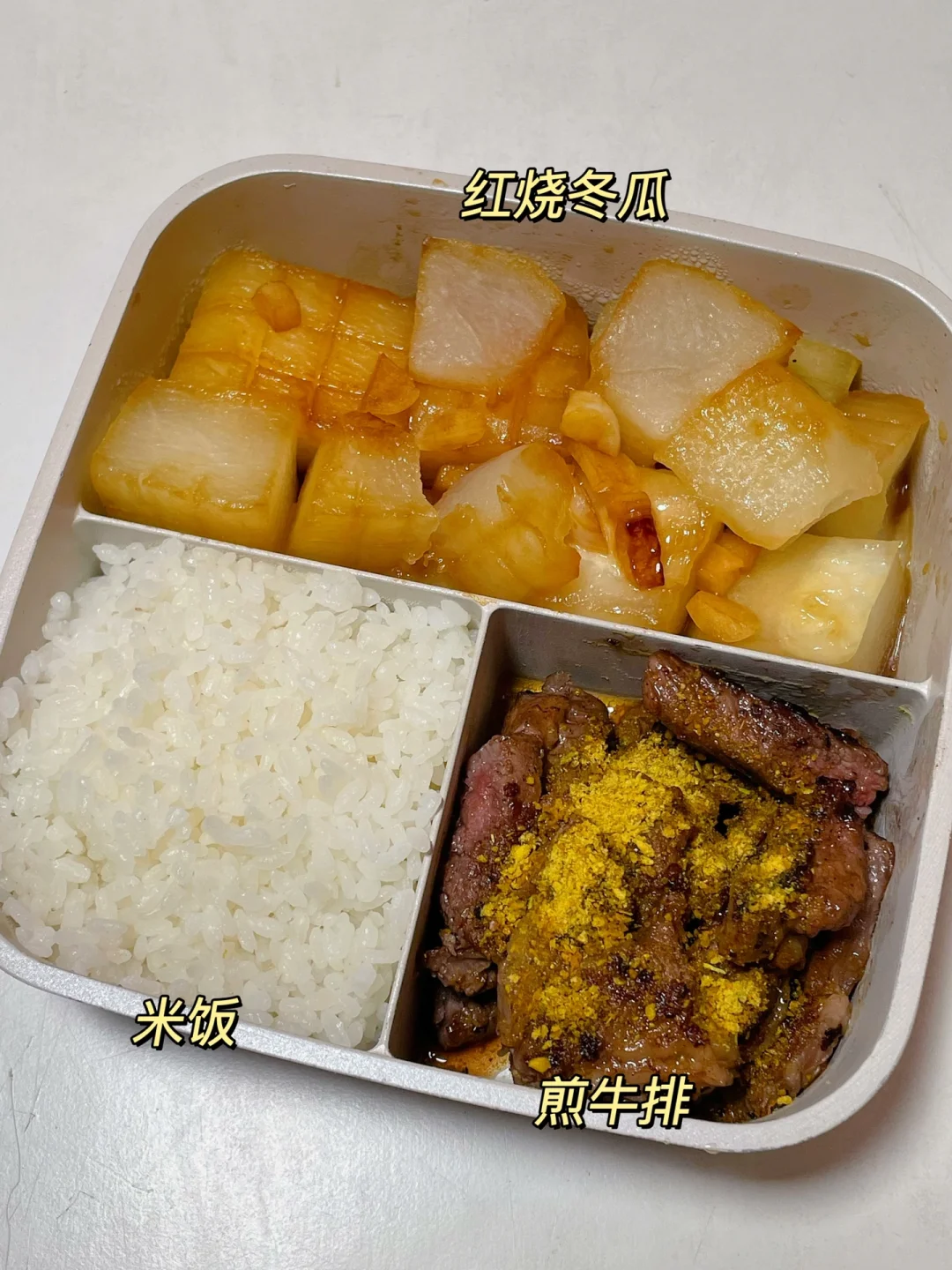 📍米饭+煎牛排+红烧冬瓜