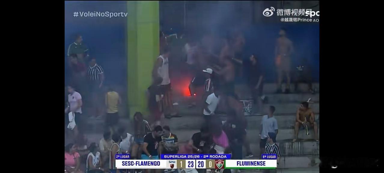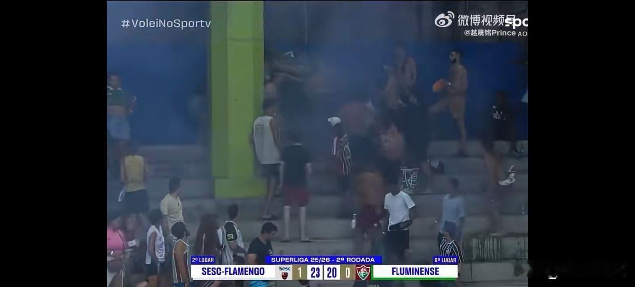 【赛场变“战场” 乱成啥了?】巴西和土耳其的赛场秩序一言难尽,真是乱成“战场”了,这让球员怎么安心打球啊? 在今晨结束的弗鲁米嫩塞vs塞斯克的女排联赛现场,严重的球迷冲突爆发,不但打起来了,还有火光……这要是拍电影演战争片,都不用道具了!