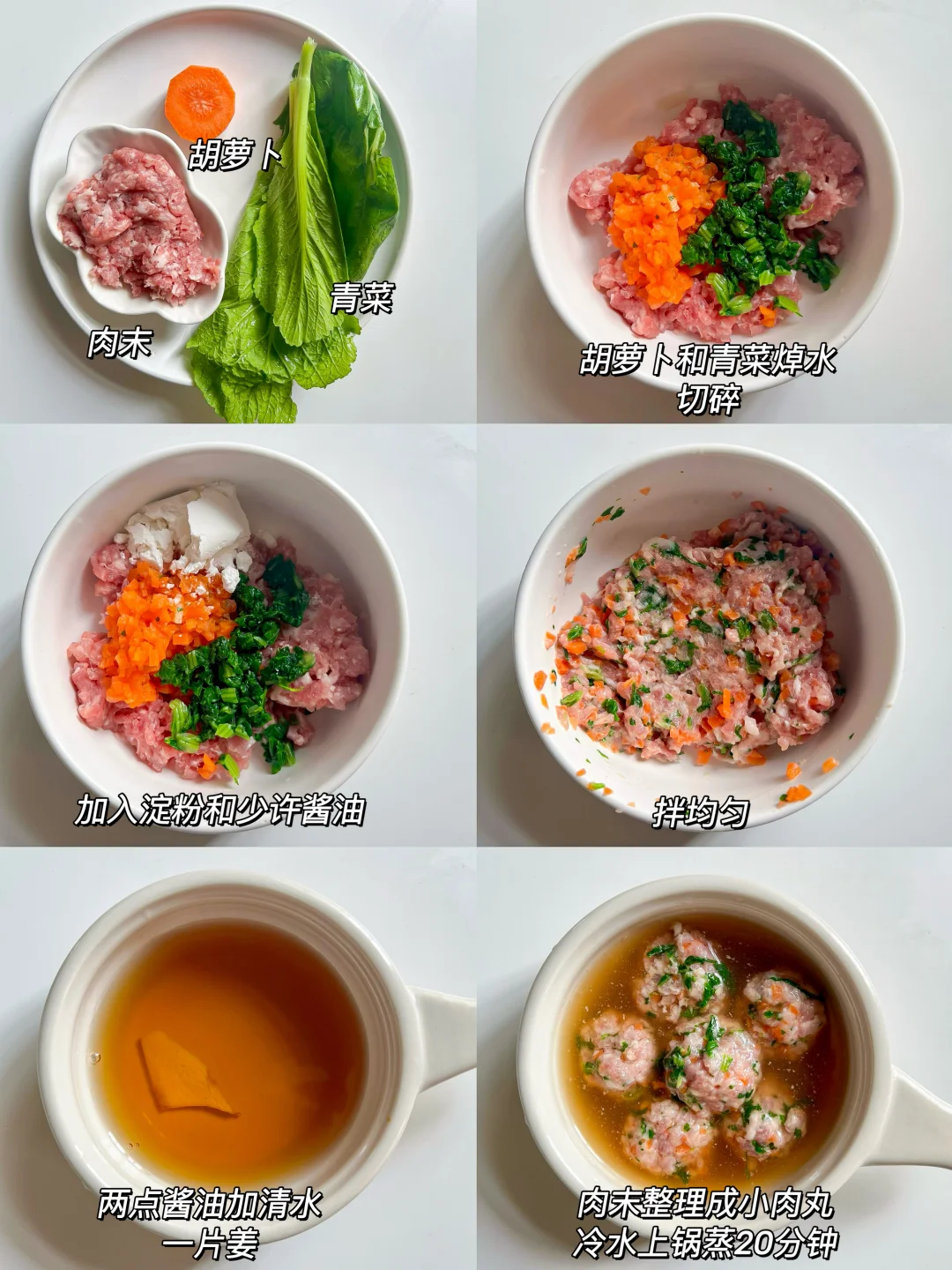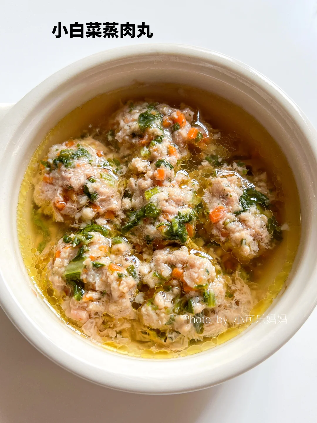 今天分享这个小白菜蒸肉丸,鲜嫩多汁,有菜有肉营养丰富,肉这么做软嫩不柴,做法也简单,不爱吃菜的宝宝一定要安排上,真的太好吃啦 - 🥣食材: 猪肉 小白菜 胡萝卜 淀粉 . ✅详细做法请看图片 ✅食材大小根据宝宝咀嚼能力处理