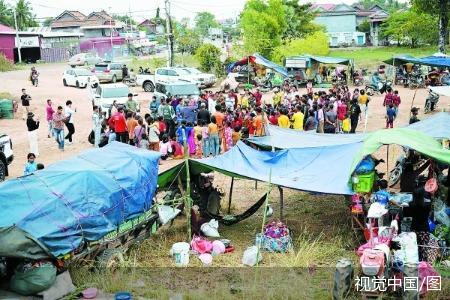 10日,柬埔寨暹粒省,柬埔寨和泰国边境地区发生冲突,流离失所的居民乘车撤离。