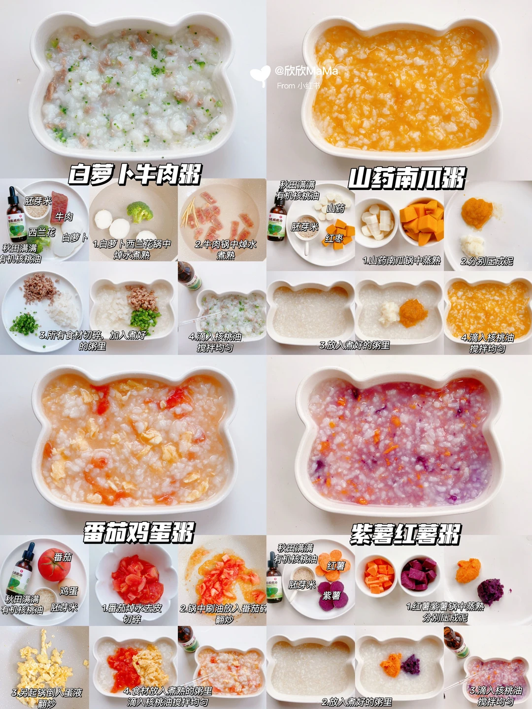 2️⃣食材刚开始可以先打泥,在宝宝适应喝粥后可以增加颗粒感