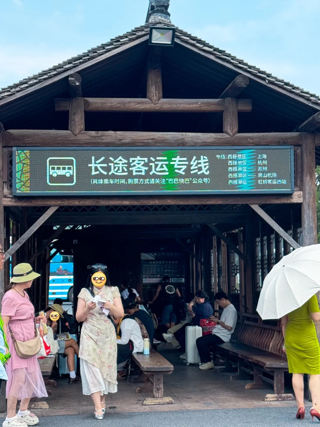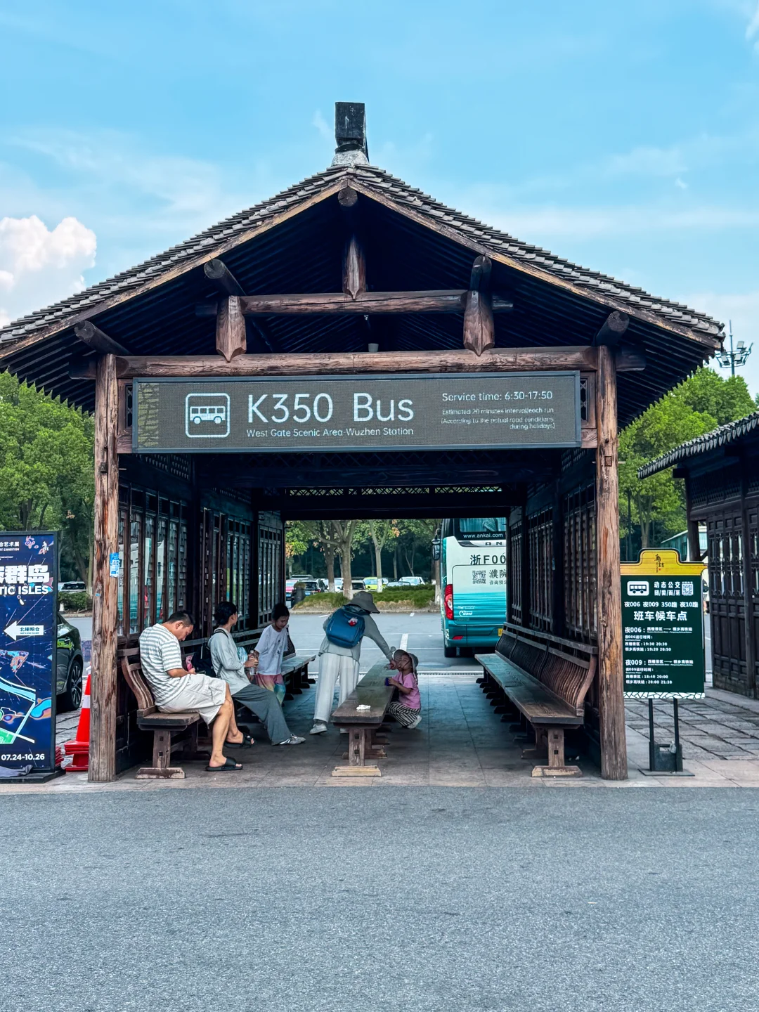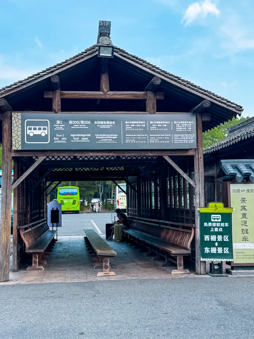 乌镇西栅景区游客中心对面,有3个候车亭,这里有多个方向的车次,方便公共交通游客出行。