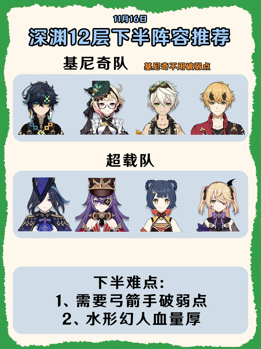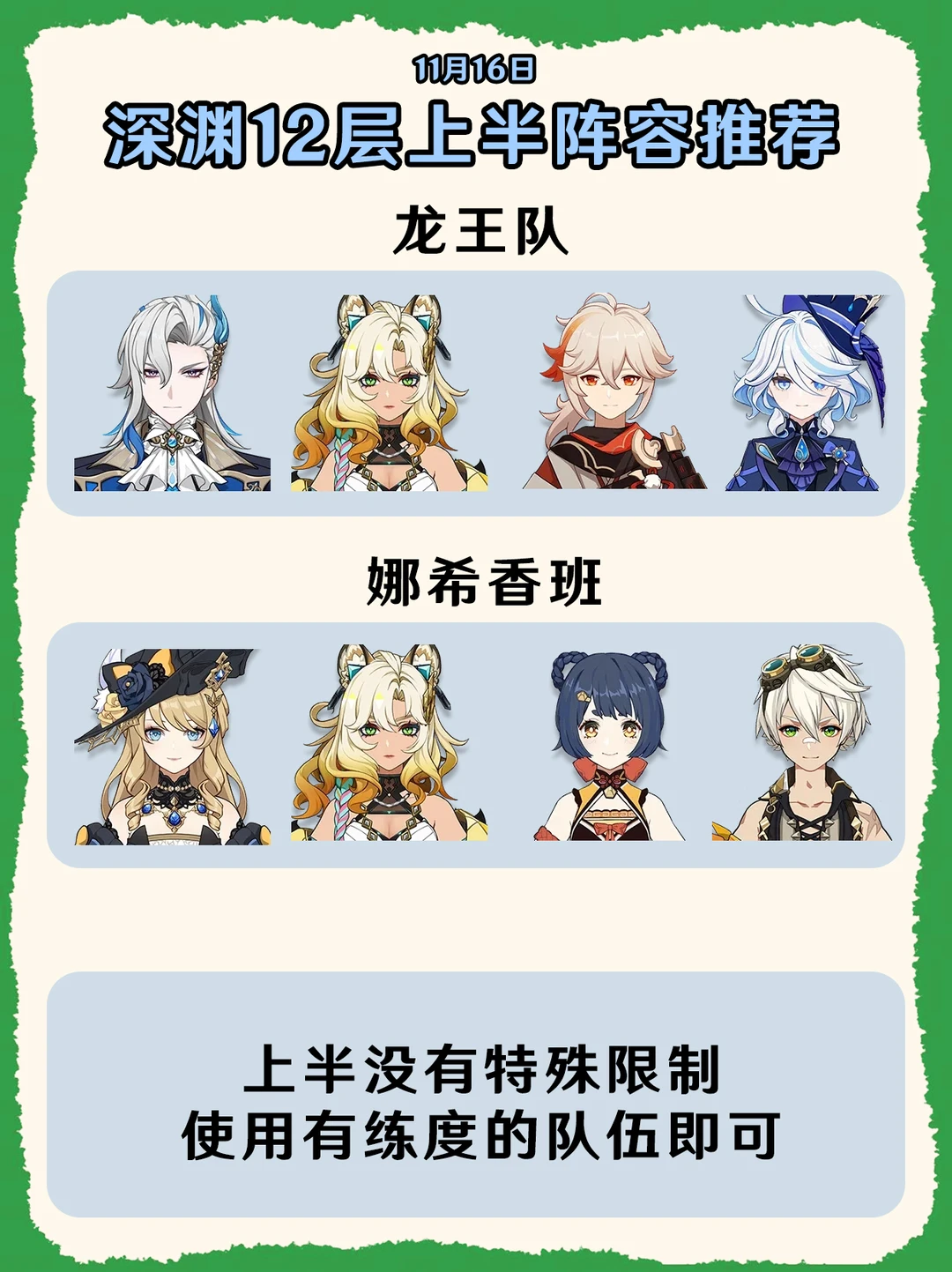原神5.1第二期深渊阵容推荐!