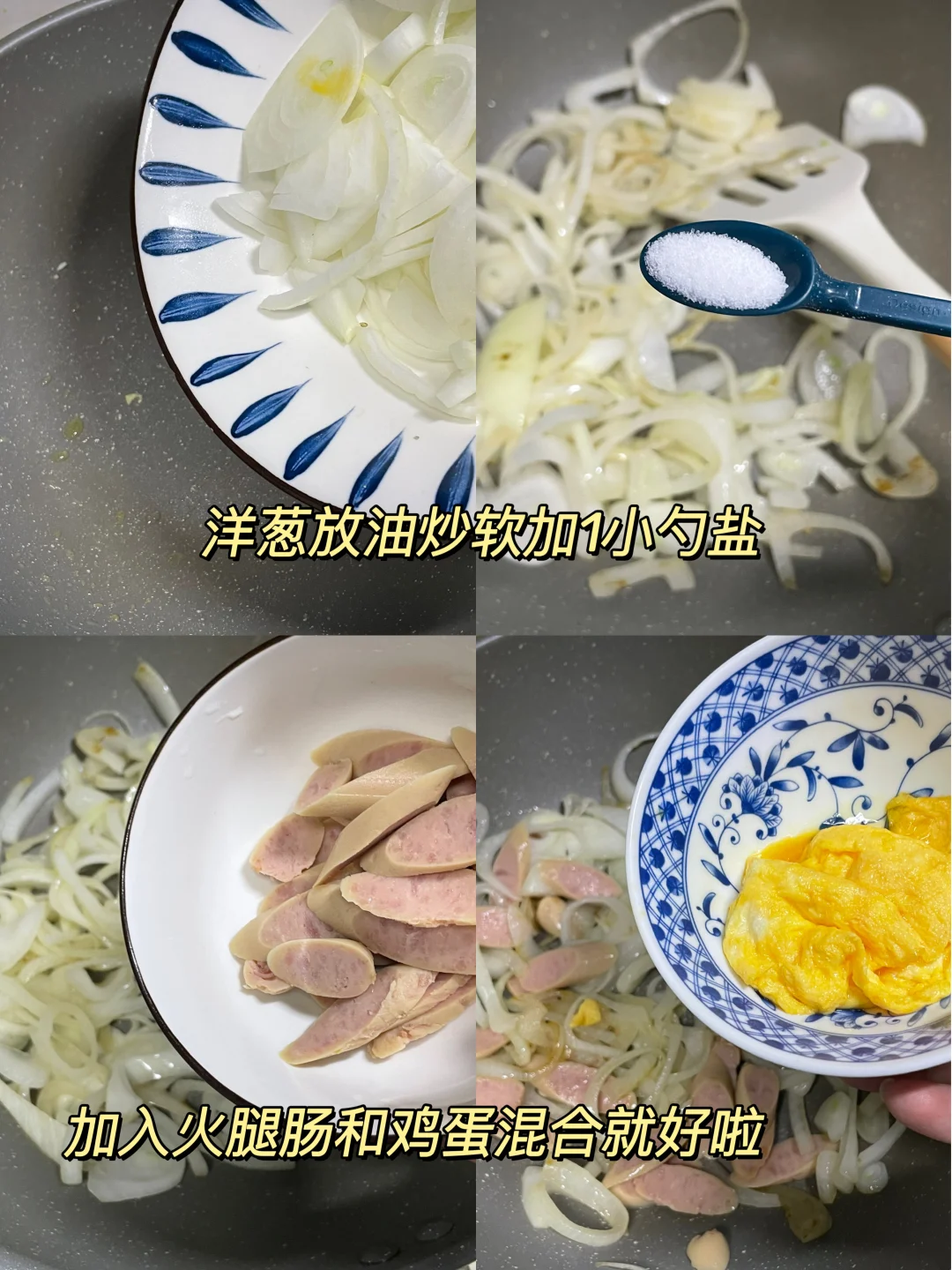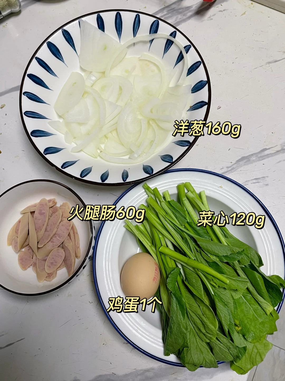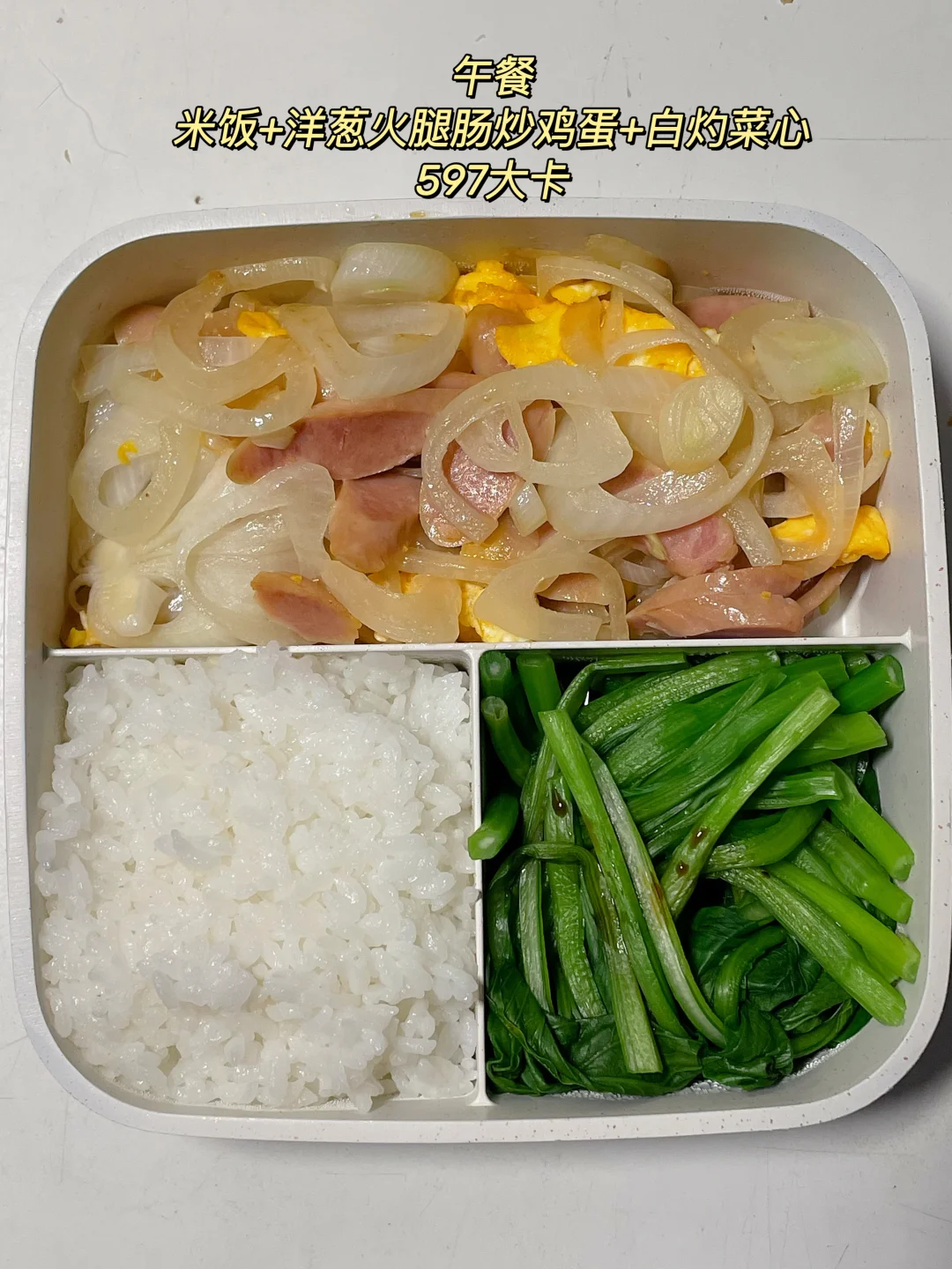 午 米饭+白灼菜心+洋葱火腿肠炒鸡蛋