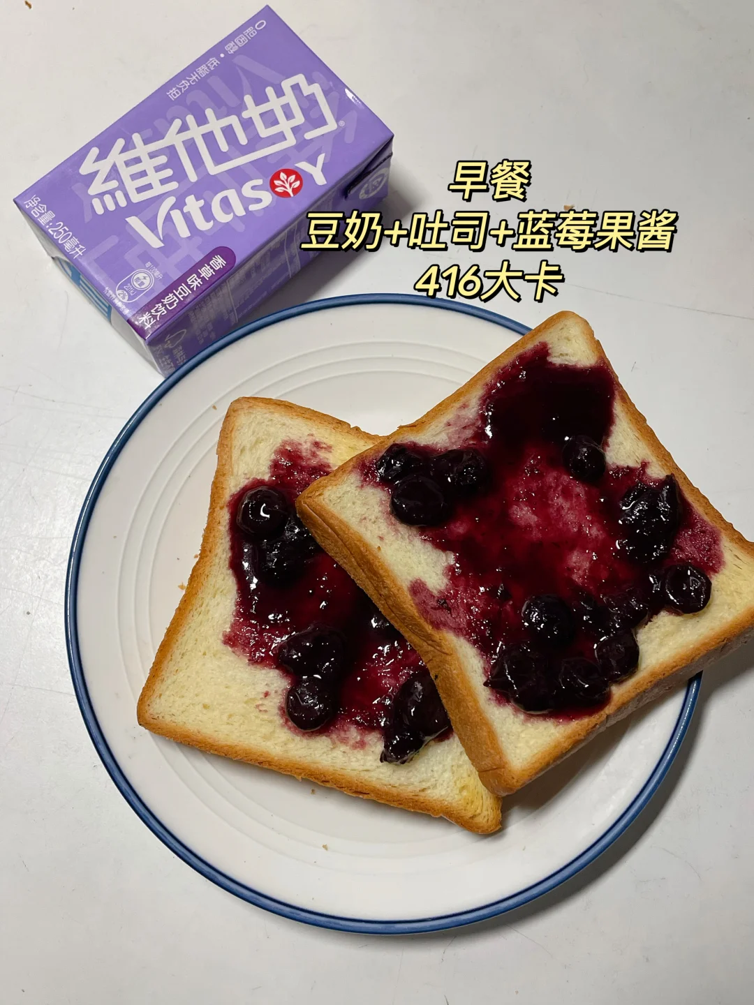 早 吐司+蓝莓果酱+豆奶