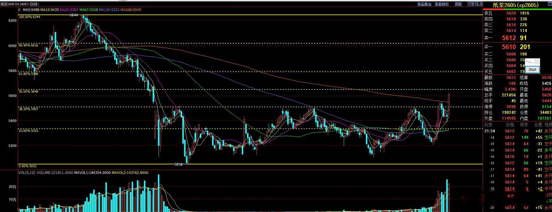 这是12月3日 微博博文完成策略, 今日纸浆完成第二目标 已经突破了年线,后期将指向5710!纸浆期货