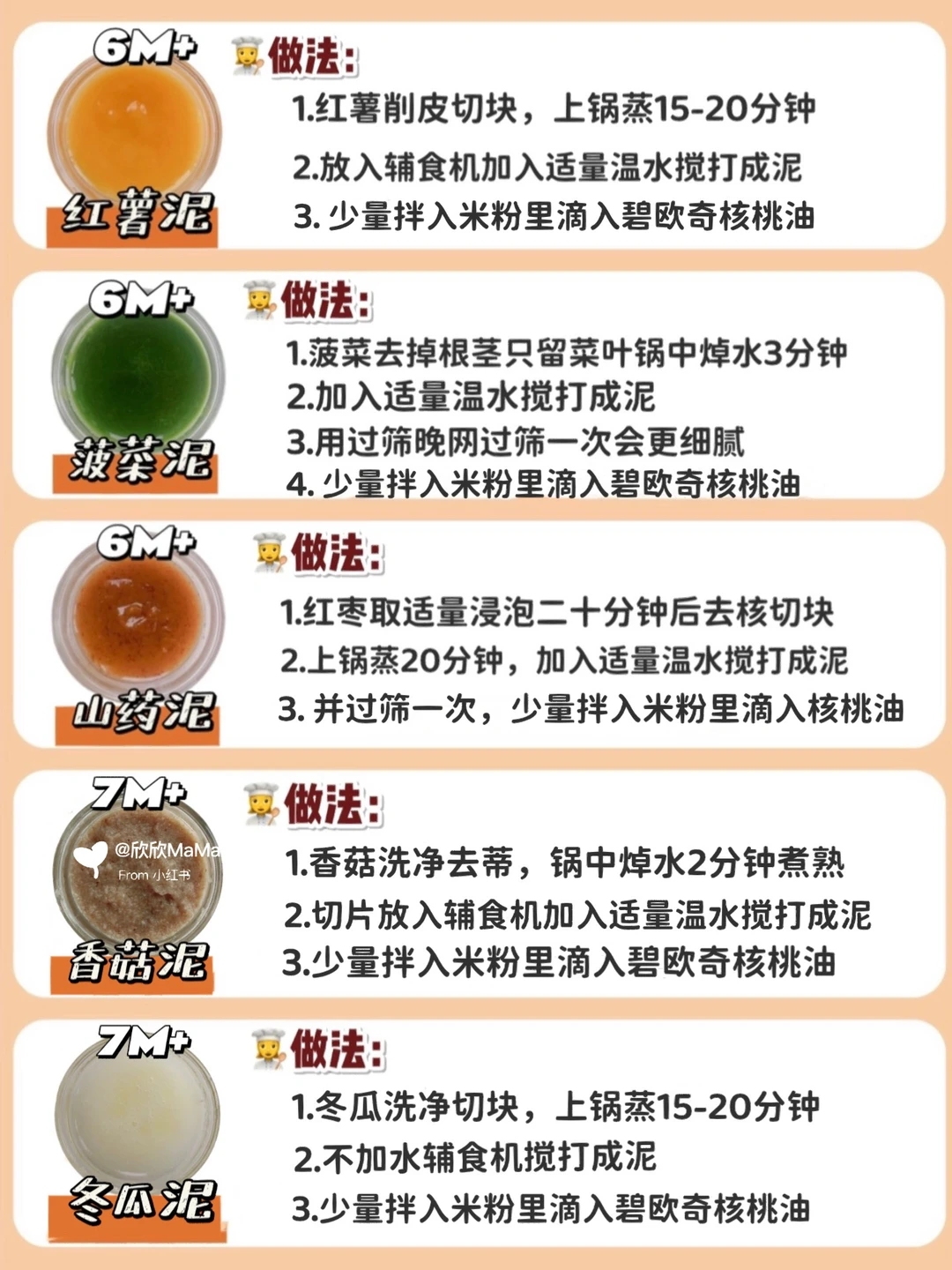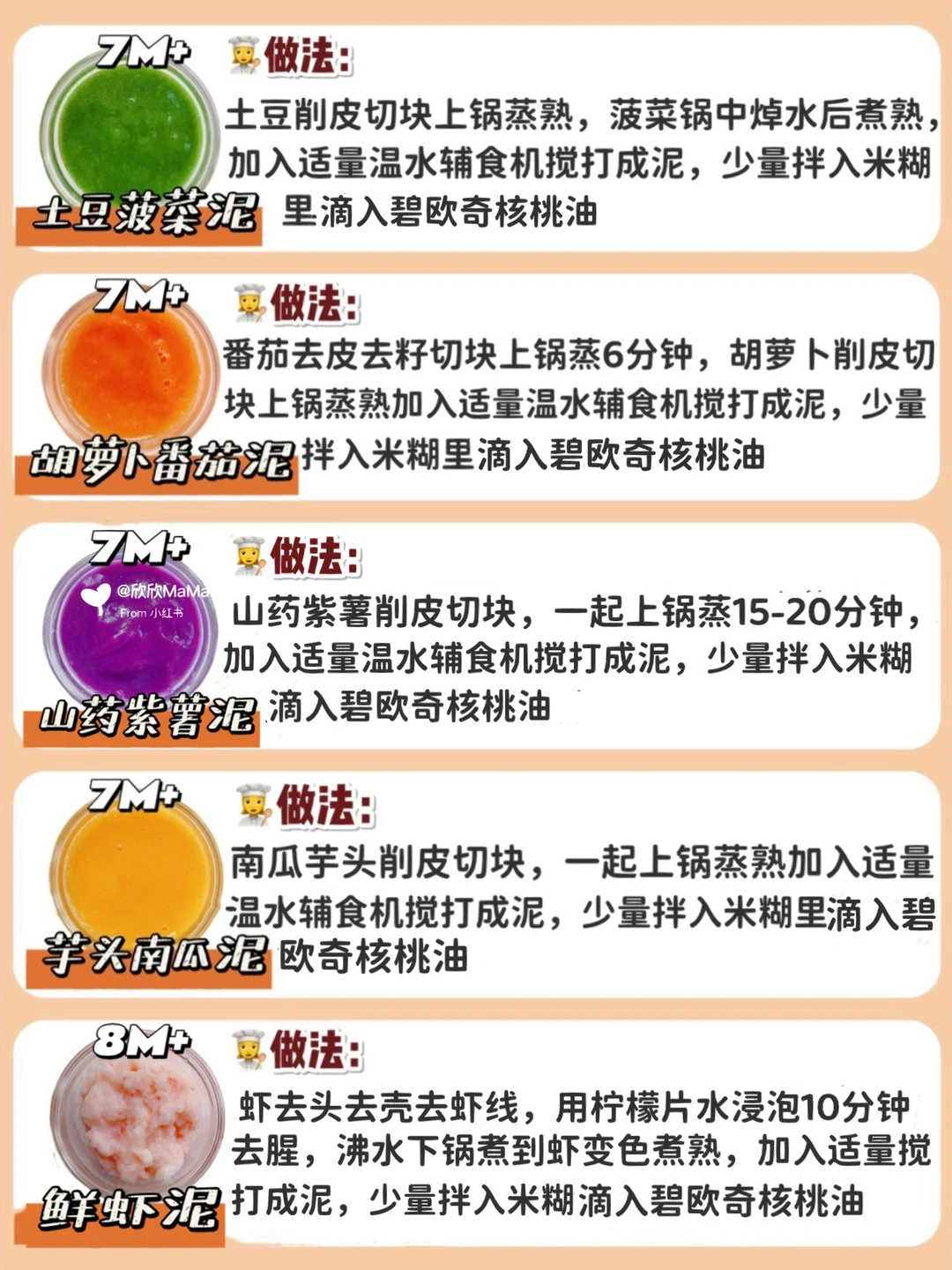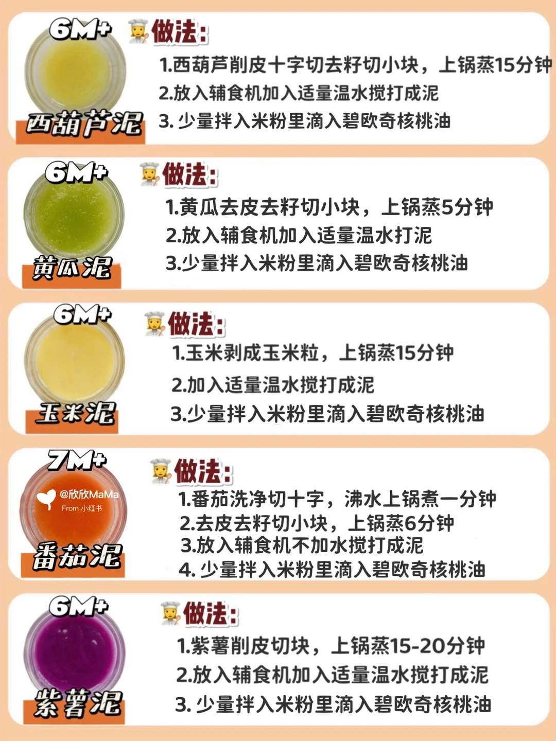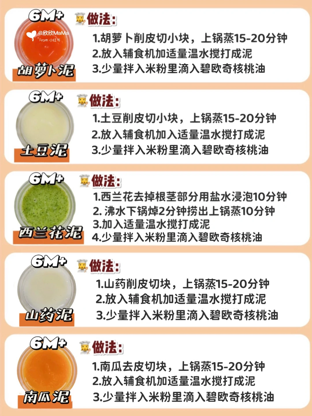 6月龄的宝宝就可以添加辅食了!辅食泥怎么添加?做法是怎么样的?那么今天欣欣妈跟大家分享下36款常见辅食泥的做法,记得收藏起来呀!
