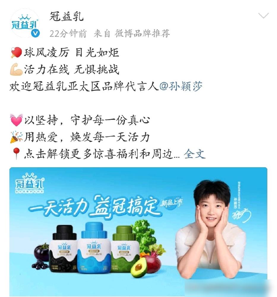 哇塞,莎莎又喜提新代言啦, 恭喜孙颖莎喜提自己的第25个个人代言 今天上午9,00,冠益乳在社交平台官宣孙颖莎成为冠益乳亚太区品牌代言人 太牛了 孙颖莎简直是代言界的宠儿, 此前孙颖莎已经接到了24个个人代言,涉及各个领域 早餐的酸奶莎莎也帮大家选好了,大家今天抢购了吗? 冠益乳官宣孙颖莎成为其亚太区品牌代言人,这不仅仅是商业版图上多了一个Logo,更像是一次品牌精神与运动员灵魂的精准碰撞。 赛场上那个眼神专注、出手果断的“小魔王”,她身上迸发的那种纯粹、坚韧、永不服输的超级活力,不正是冠益乳想传递的“由内而外焕新”的最佳注脚吗? 这份代言,接得恰如其分。 孙颖莎的代言天团已经扩容至25家,横跨多个领域。 这数字背后,是市场对顶级运动员商业价值的绝对认可,更是一种稀缺性标签。 她不像转瞬即逝的流星,而是以扎实的成绩和健康的形象,构筑起一道独特的商业护城河。 球迷们戏称“莎莎的私服都会被抢空”,这看似玩笑的话,恰恰印证了她那股强大的“带货”魔力,这份魔力根植于信任,粉丝信任她的选择,如同信任她在赛场上每一个球的质量。 让我们把目光聚焦回这次合作的主角,冠益乳超级活力罐。 它绝非一杯普通的酸奶那么简单。 背后是品牌在益生菌领域的多年深耕,每一罐里都藏着经过精准配比的优质益生菌群,它们像默默工作的活力卫士,悉心调理肠道环境。 再搭配黄金比例的乳蛋白和多种维生素,这杯酸奶俨然成了一个小小的能量补给站。 它的口感也值得称道,绵密醇厚,清甜不腻,无论是清晨匆忙间搭配早餐,还是午后需要提振精神的时刻,都能带来味蕾与身心的双重抚慰。 品牌方们无疑是精明的。 他们选择的不仅仅是一张阳光可爱的面孔,更是一种积极向上的生活态度符号。 孙颖莎在赛场上的拼搏姿态,与她私下流露的亲切可爱,形成了迷人的反差。 这种真实感和正能量,是任何刻意营销都难以复制的宝贵资产。 当品牌与这样的运动员携手,其营销信息便自然而然地拥有了温度与深度,超越了单纯的产品叫卖,升华为一种生活方式的主张。 看看官宣视频下的沸腾景象吧,粉丝的欢呼、支持者的抢购,都在证明这次合作的火花四溅。 有球迷甚至在线“求洗面奶”代言,这份可爱的期待,何尝不是市场潜力的另一种体现? 孙颖莎的商业价值,正随着她的球拍一起,持续挥出漂亮的弧线。 对于品牌而言,能与这样一位处于上升期的体坛偶像同行,无疑是为品牌形象注入了一剂强劲的活力素。 这场双向奔赴,才刚刚开始,未来无疑更值得期待。