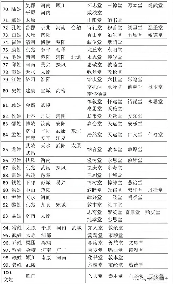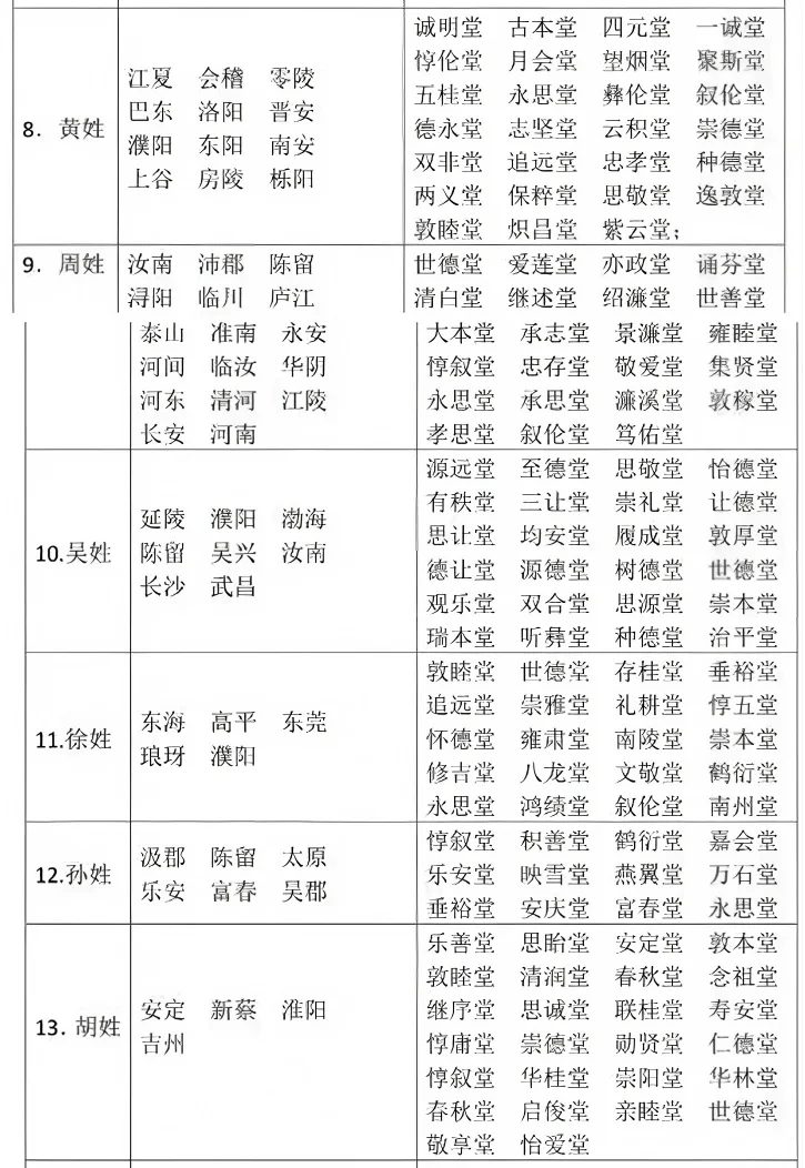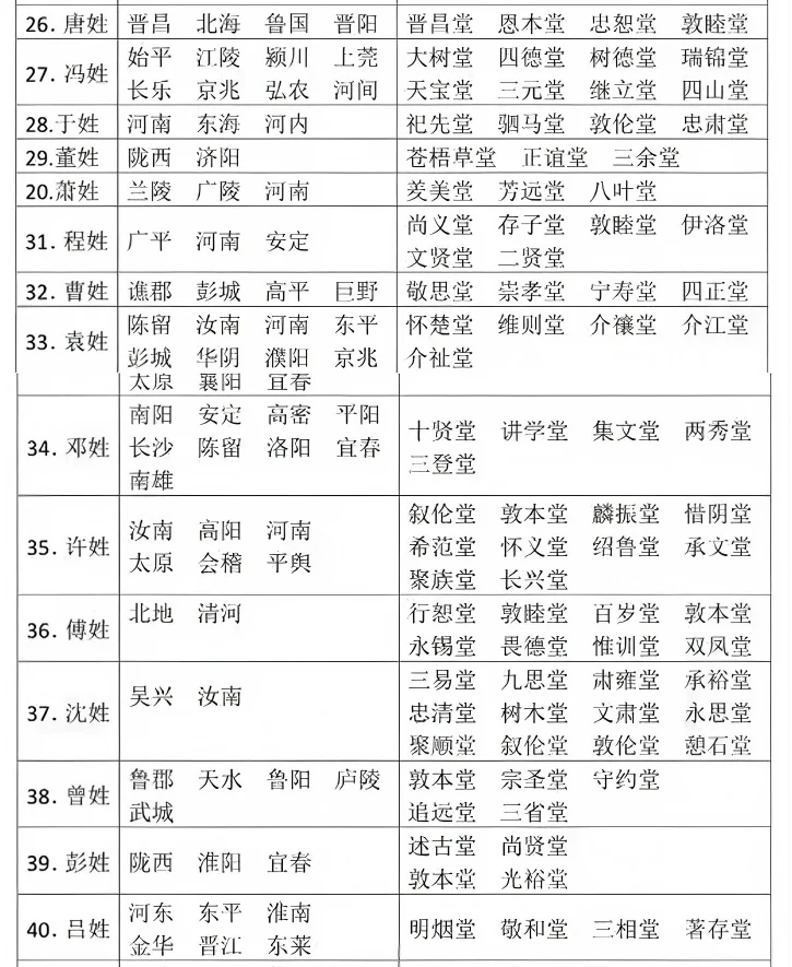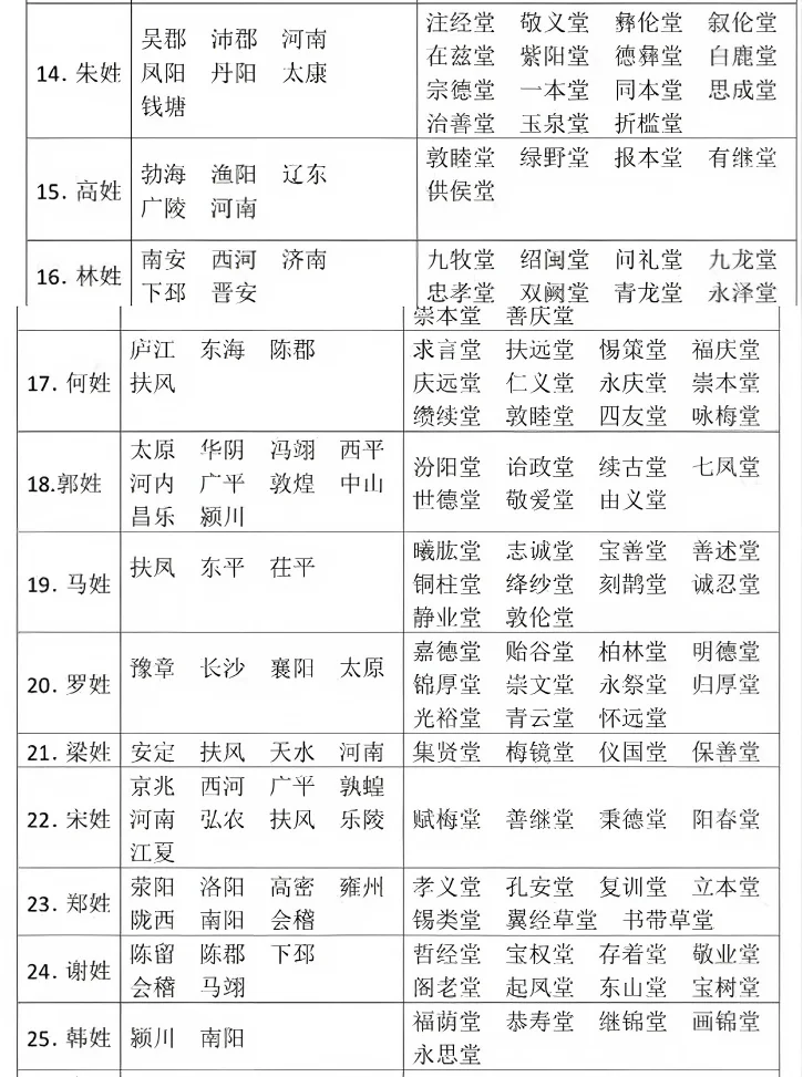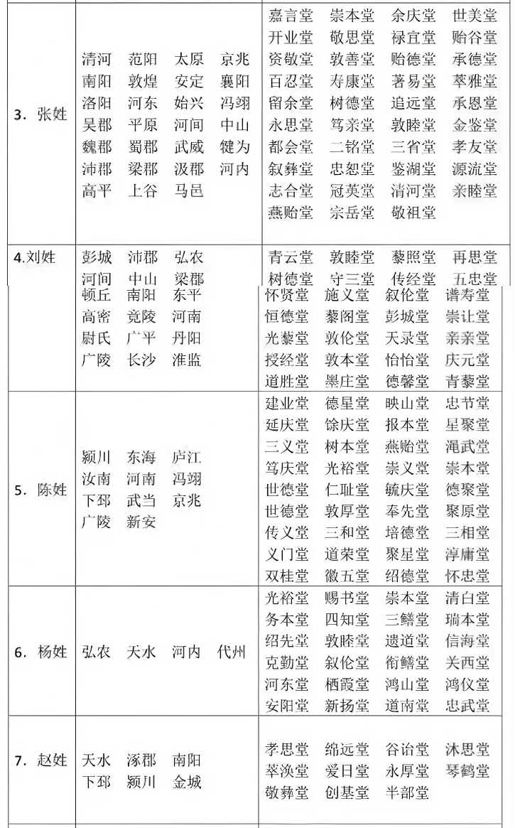 “李”姓:有37个郡望堂号。 “王”姓:有25个自立堂号。 “张”姓:有27个郡望堂号。 “郡望堂号”简单的说就是一个地域范围的名门望族。比如太原堂李氏,就是来自山西太原的李氏家族。而“自立堂号”简单的说就是根据自家祖辈的功德、典故而取的堂号。比如半部堂赵姓,就是赵普在宋朝时期用半部《论语》治天下的典故。所以在古时候别人问你姓氏时,都会加上自己的地名或堂号,比如陇西李氏,三槐堂王姓等等,别人一听就知道你祖辈的功绩,就会对你高看一眼。如今我们对这方面了解的人越来越少,仅仅只有少部分人对此有研究。但是无论别人懂与不懂,我们自己的姓氏堂号一定要弄清楚,毕竟祖辈的功绩不能忘记。