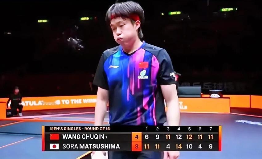 王楚钦赢下松岛之后, 自己也长长出了一口气。 他在极度的疲惫之下, 用自己坚强的