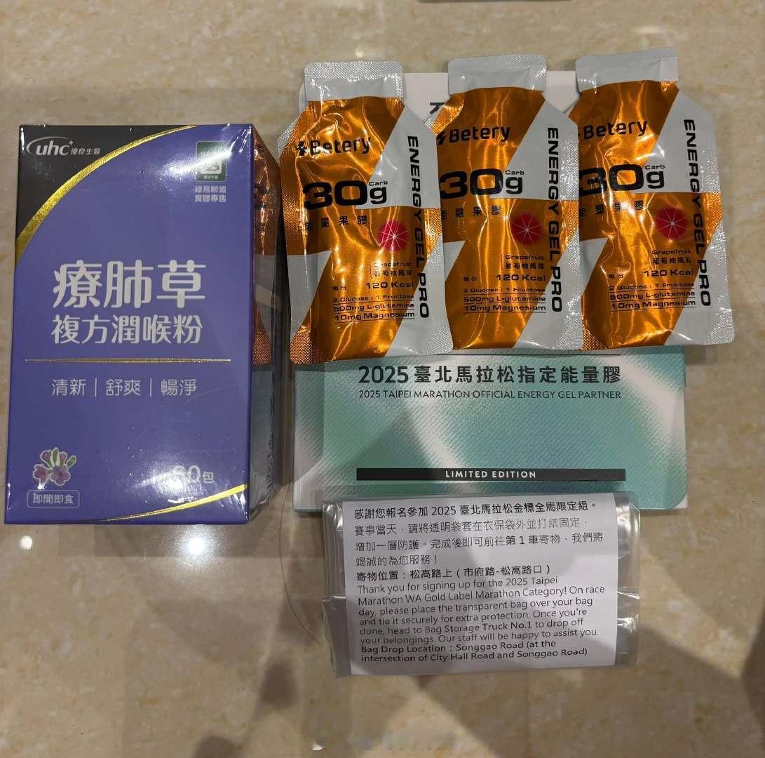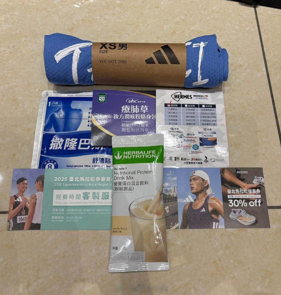 2025台北马拉松金标全马限定组配送到家的参赛物品。图3是台湾统一规格、各赛事可