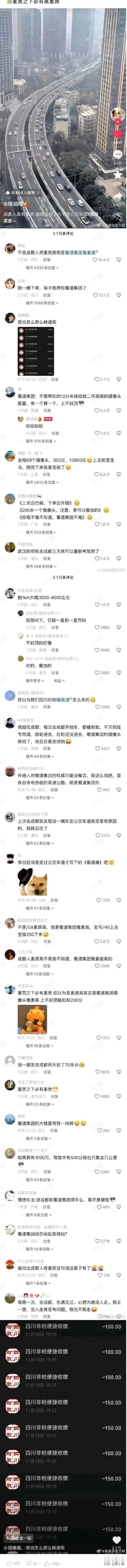 蜀道难,难于上青天!都说成都人民素质高,高架上开车井然有序! 有人说,成都人民开车是素质最高的,不飙车,不超车,不鸣笛,不加塞!堪称是全世界最有素质的司机! 还有人说,成都高架是最畅通的,开车体验感很好! 有个笑话:蜀道集团,不要用你的12分来挑战高架的秩序! 据传蜀道高架全程60多个摄像头,不知道真假[捂脸][捂脸]