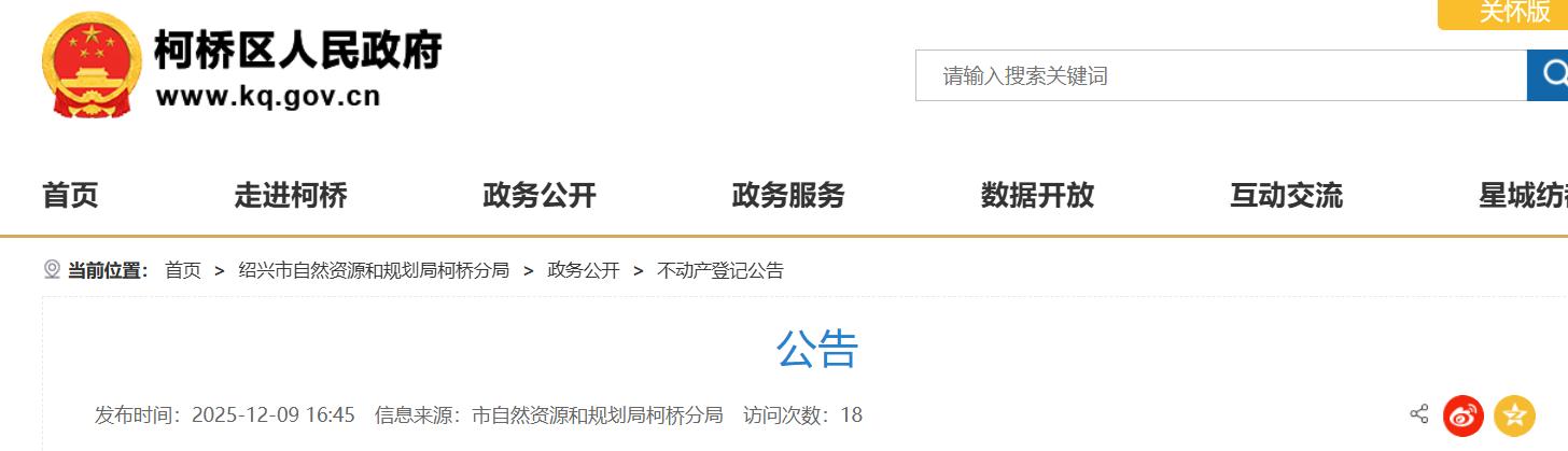 登记机构:绍兴市柯桥区不动产登记服务中心