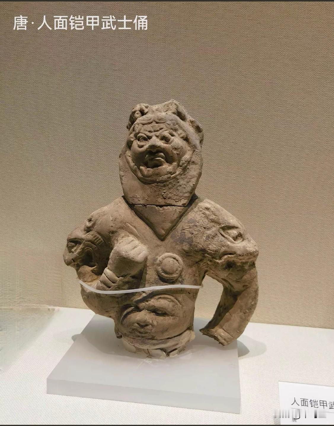 整理照片,发现晋祠圣母殿两侧宋代所塑站殿将军方弼与方相,他俩胸腹部的人面铠甲,与沧州博物馆唐时人面铠甲武士俑的一样,不过显得更威猛。 这种设计,战场临敌,猝然看到,应该会心中一凛,恍若天神下界罢。