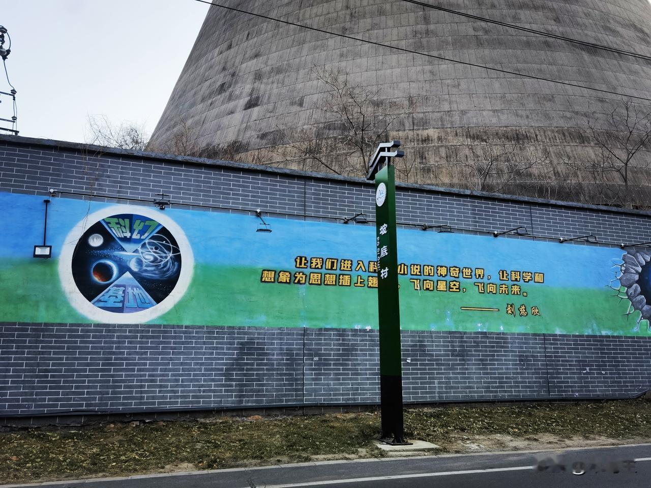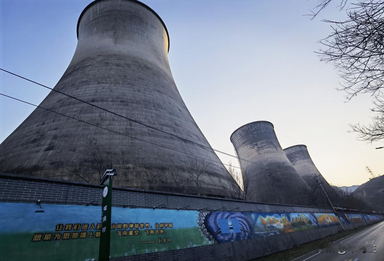 刘慈欣的娘子关 去娘子关,经过刘慈欣曾长期工作过的电厂。 电厂的三个冷却塔喷出的白汽在山谷里聚了又散,蓝黑色的宇宙背景下,电厂低沉的嗡鸣是唯一的背景音,巨大而稳定的能量在管道里奔流。 这是刘慈欣写出《流浪地球》《球状闪电》等作品的地方,在这里他还完成了《三体》系列的前期构思和部分写作。 这里偏僻安静的环境,为刘慈欣提供了专注思考和写作的空间。 坚硬如铁的太行山壁、日夜运转的工业基地,极致的封闭与极致的辽阔,极实的钢铁与极虚的星空,成了他作品中某些场景的灵感来源。 一些庞大的构想——关于太阳的逃亡、空间的折叠、宇宙的归零——就是在这稳固的日复一日中,从一个人的头脑里寂静地诞生。 如今电厂的外墙上画满科幻的场景,还有小说中的语句。 它们是一种证明,证明某个下班后的寻常夜晚,一个人在此处抬头看星时,曾为人类这个族群,预定了千年后那片无人知晓的星空。