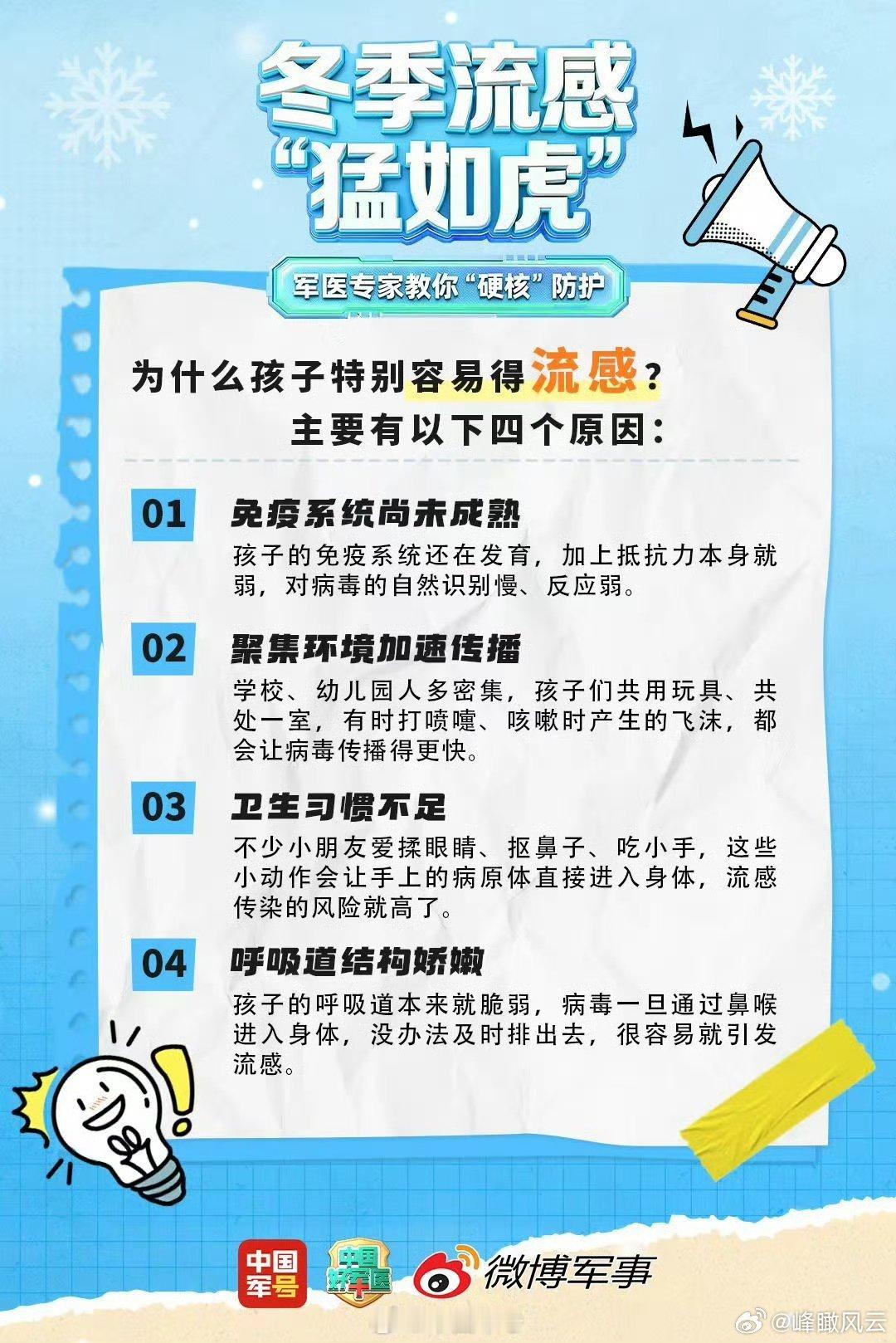 【转发收藏!军医教你防治流感】降温季流感高发,为啥孩子总是中招?高危人群该怎么应