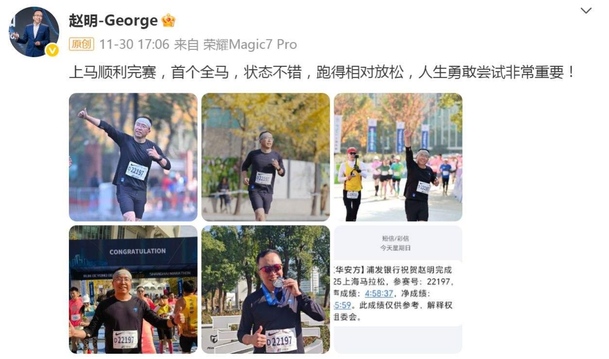 荣耀手机前 CEO赵明传说马上要回归荣耀!重新领航荣耀手机,值得期待,他确实是荣耀手机的一张名片,想到荣耀,就想到赵明,就好像华为手机,想到华为手机,就想到“余大嘴”余承东!想到格力空调,就想到董明珠大姐! 赵明52岁参加马拉松比赛,说明他1月份离开荣耀不是身体原因啊,或者说身体已经完全康复了!几十公里的马拉松不是每一个人都可以跑完的,能跑完的都不是一般人,起码身体质量杠杠的! 荣耀手机最初起源于华为,是华为为了跟以网销为主的小米进行对抗,让荣耀的产品线直对小米产品线,两个品牌在网上对阵。后来,小米在线上成功了,也转战线下,荣耀也一样不仅仅止于线上,也开始大规模的线下,还开了很多专卖店! 荣耀顶峰的时候,也就是华为没有芯片的时候,曾经在国内国产手机销量第一,但这两年销售确实是有所下降,传说是管理团队跟股东团队意见不合。 国产手机品牌以前有几十上百个,曾经我们听过、使用过的有TCL、康佳、波导、天语、夏新、夏华、格力、金立、国乾、普莱达、朵唯、HTC、酷派......大部分品牌已经消失,国产品牌现在只剩下小米、OPPO、 vivo、华为、荣耀,只有小米是北京的,其他都是广东品牌!主要是东莞。 全球销量前三的依然是三星、苹果、小米,小米已经连续十几个季度全球排第三,唯一现在可以问鼎全球销量冠军的只有小米!毕竟小米的生态链跟全球化的布局是最早的,也是最成功的。 (图片来源网络。如有侵权,请联系删除)