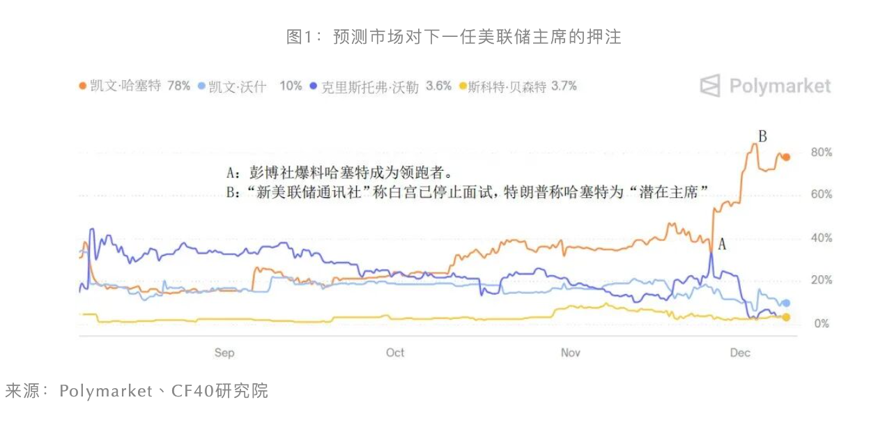 一些预测数据显示,哈塞特的胜率呈现垂直拉升态势,胜率一度超过85%,远超此前一度热门的候选人前美联储理事凯文·沃什和现任美联储理事克里斯托弗·沃勒等人。