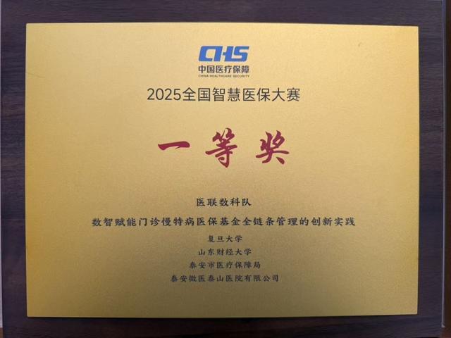 12月8日,2025年全国智慧医保大赛颁奖典礼在上海成功举办。由泰安市医保局、复旦大学、山东财经大学与泰安微医联合组建的“医联数科队”,从全国800多支参赛团队中脱颖而出,凭借在山东泰安打造的数智赋能门诊慢特病医保基金全链条管理创新实践作为参赛项目,荣获全国一等奖。