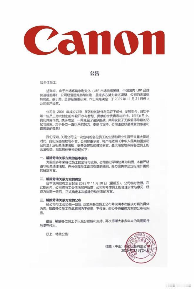 日本制造大撤退!中国制造未来的战场在哪里? 1. 撤退现象 2025年11月21日,佳能(中山)办公设备有限公司停止生产经营,这是日本制造退出中国市场的缩影。 日本养乐多本社在华23年的广州第一工厂于11月30日关停,去年12月上海工厂也关停了。 今年8月,索尼Xperia官方微信公众号注销,手机业务退出中国市场。 今年7月,三菱退出中国市场,整车和发动机业务均停止。 2. 从辉煌到没落 2012年,佳能(中山)办公设备有限公司新厂区启用,拥有超大规模厂房和完善的员工设施。佳能(中山)办公设备有限公司官网大事记在2022年后未再更新,表明其在中国市场的发展停滞。 2012年,广汽三菱成立,成为三菱汽车在中国市场开拓的重要举措,销量曾达到14.4万辆的历史巅峰。三菱汽车销量从2018年的14.4万辆巅峰,到2022年销量降至3.36万辆,呈断崖式下跌。 2018年奥林巴斯关闭深圳工厂,2024年10月航天三菱发动机下线数量年均产量缩水65%以上。 3. 溃败原因 中国本土制造的崛起,如中国成为全球第三个拥有打印机核心技术的国家,佳能被替代。 日本企业在中国市场的固执,如三菱汽车六年未出新款,忽视消费者需求和市场变化。 部分行业市场规模萎缩,如数码相机市场因智能手机普及而萎缩,奥林巴斯深圳工厂运转率降至顶点时期的20%。 日本制造业在全球范围内仍具有强大竞争力,因全球布局而对中国市场不够敏感。 4. 中国制造业的崛起与未来 中国本土品牌在家电市场已具有绝对优势,2020年国内冰箱、洗衣机、空调市场中,本土品牌的零售额份额分别达到78%、71%、93%。 中国企业未来真正的战场在更为广阔的全球化市场,中国品牌需在全球与日本和其他国家的产品竞争,最终站上全球经济商业舞台的最中央。
