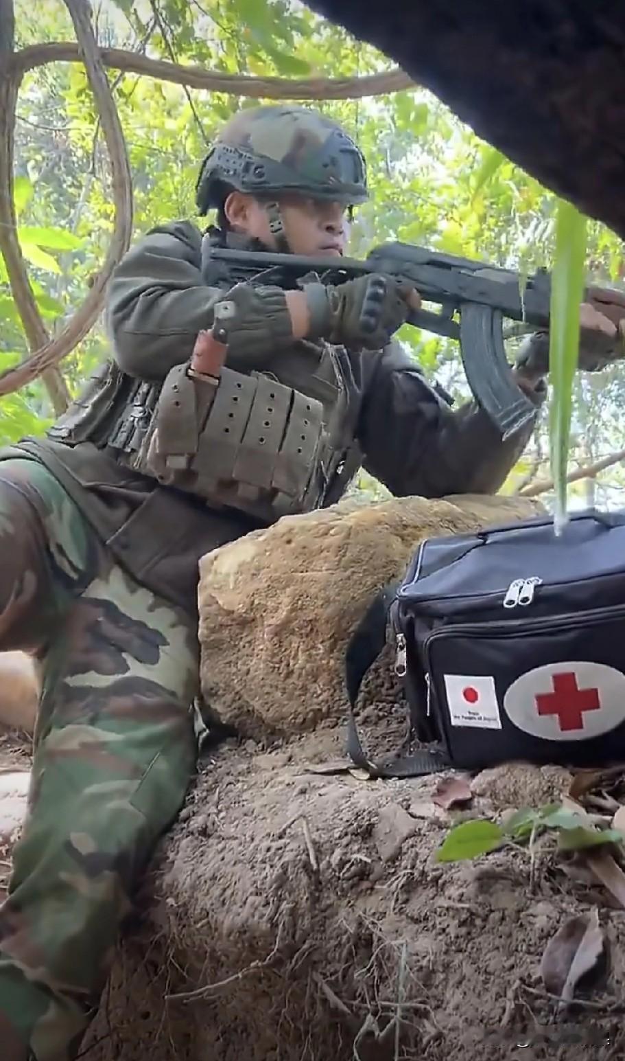 难道是前方吃紧、后方紧吃,前方士兵的装备和后方大佬的穿着,对比一下为什么区别这么大。 柬埔寨前线士兵居然还在使用老式的AK突击步枪,看那个枪托,正常来讲这些武器现在只有非洲以及游击队或者不禁枪的国家娱乐在用。 而且单兵携行具也是怪怪的,这样拿弹匣似乎不顺手,由于匕首没有地方挂,也只能放在弹匣袋里,急救包更是搞笑直接用民用包来装。 与后方大佬们高档笔直的服装相比,太寒酸了,这样能打的赢吗?