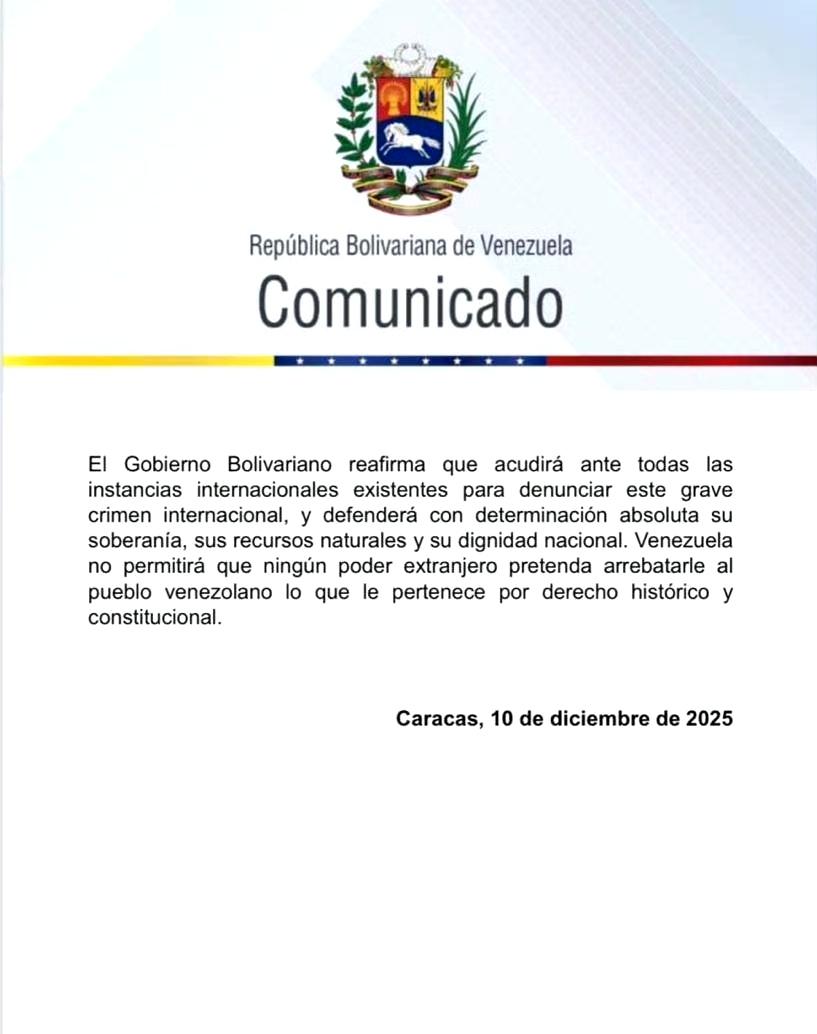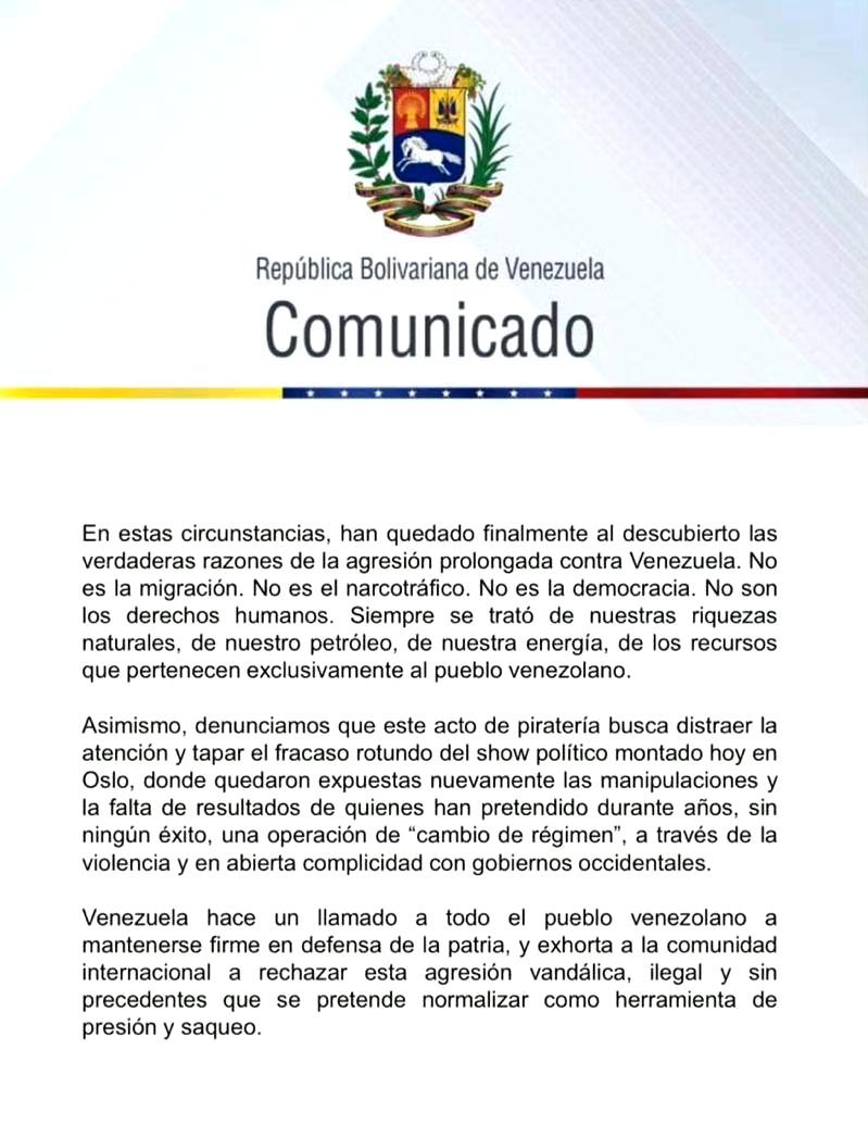 最新消息:委内瑞拉发布公报强烈谴责美国总统公开承认在加勒比海劫持油轮的行为, 构成“公开抢劫”和“国际海盗行为”,其根本目的是掠夺委内瑞拉石油资源。