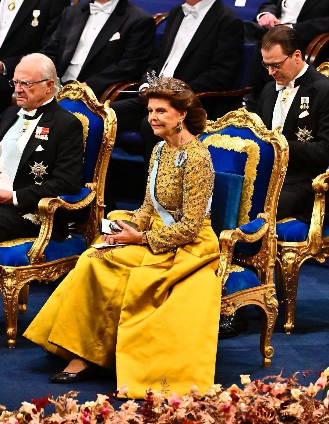 12月10日,卡尔十六世·古斯塔夫和西尔维亚王后出席2025年度诺贝尔颁奖典礼。