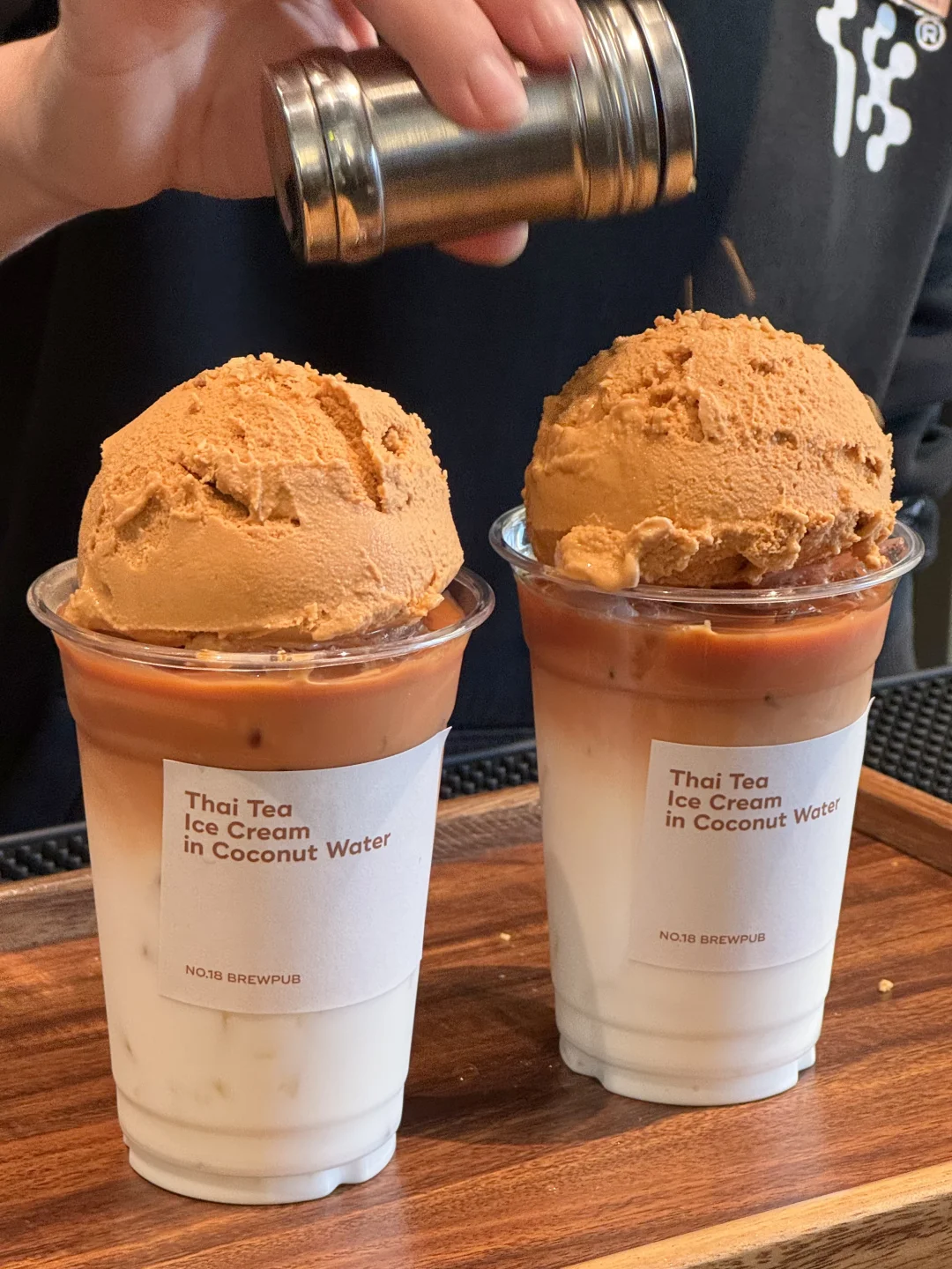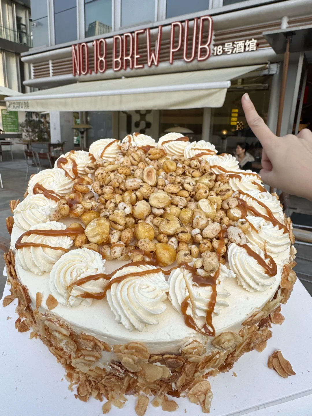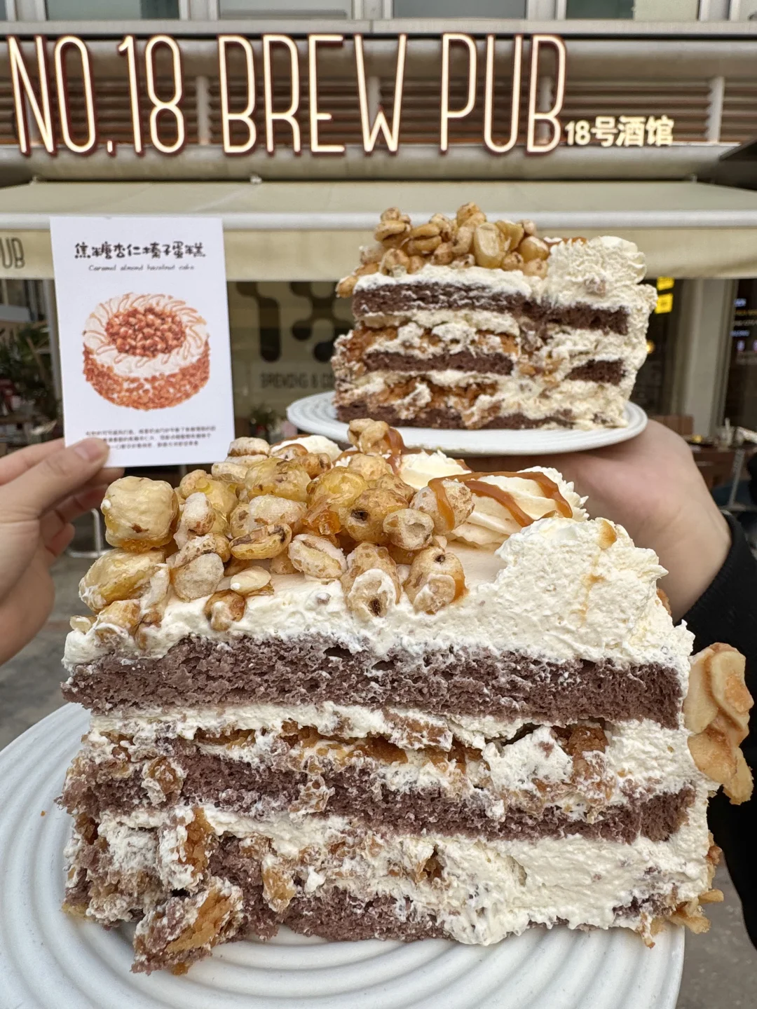 薄巧脑袋喝到了!薄巧冰淇淋椰子水🥥清爽好喝还ju出片😭泰奶冰淇淋生椰乳都给我去喝啊! 推荐他们家的焦糖杏仁榛子蛋糕 酥脆的杏仁片 焦糖海盐咸奶油 里面还有巧克力薄脆🍫口感丰富吃上一块尊嘟会幸福☺️ 印象比较深的还有韩式甜啦芝士面包炸鸡🧀面包里满当当的芝士 外酥里嫩的炸鸡被芝士酱包裹 一口爆浆 南洋红咖喱牛肋锅、日式照烧鸡腿披萨🍕、黄油梅干菜焗黑虎虾🦐都好吃欸 而且店里浓郁的圣诞氛围🎄拍照吼吼看!! 📍 18号酒馆(滨江山泽里店) 📍 18号酒馆(天目里店)