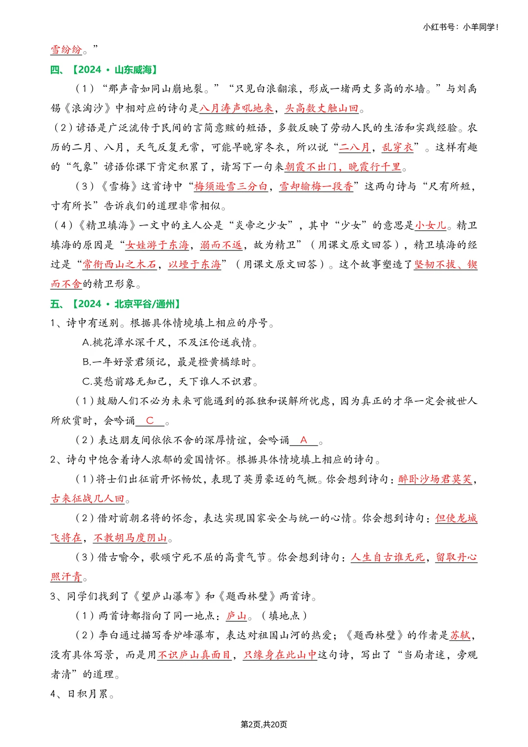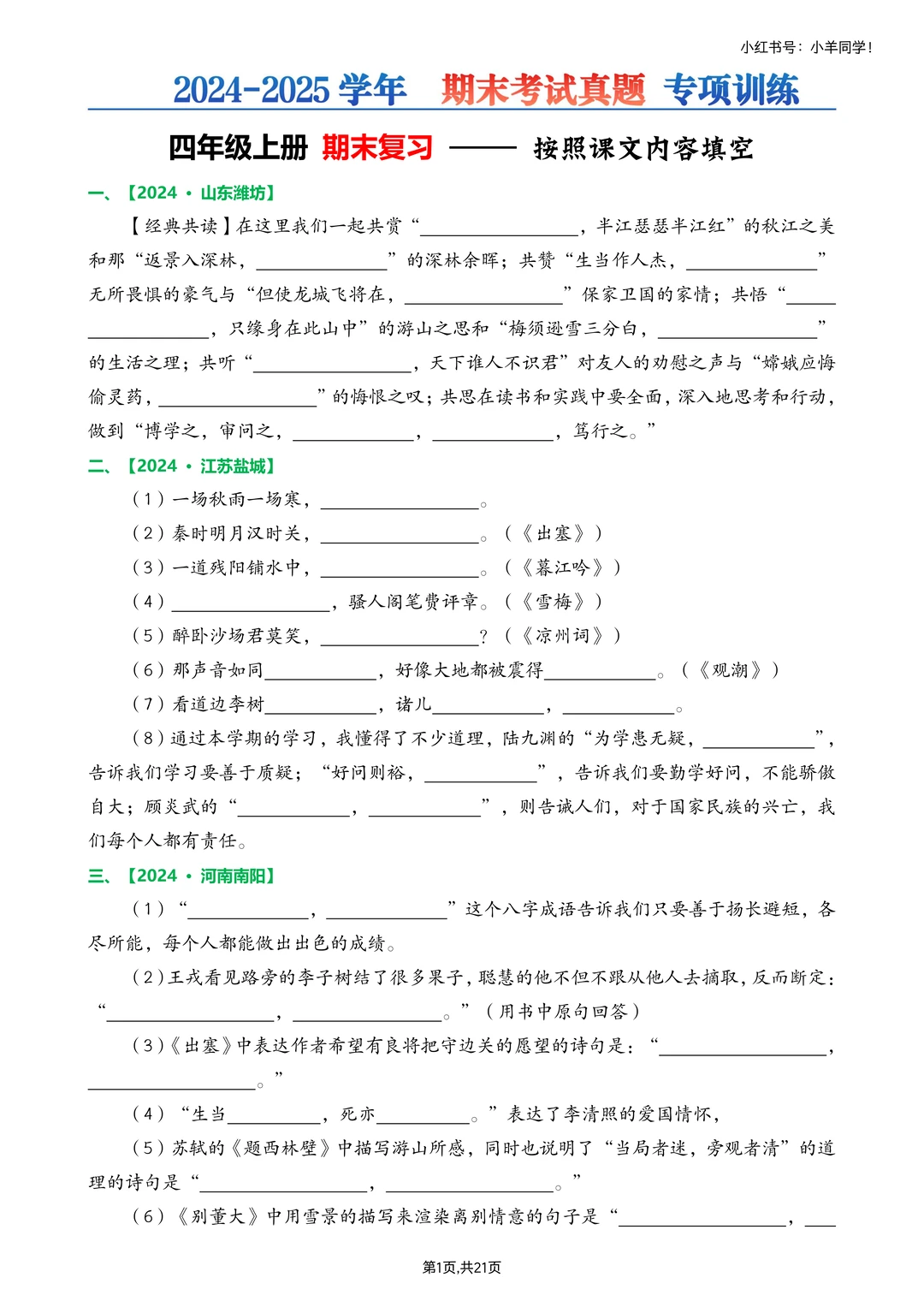 🎈这套习题参考了近百个地区的2024-2025学年期末真题卷。很多地区都是相似题型,我选取了其中重中之重的,超高频考点的试题进行的总结。