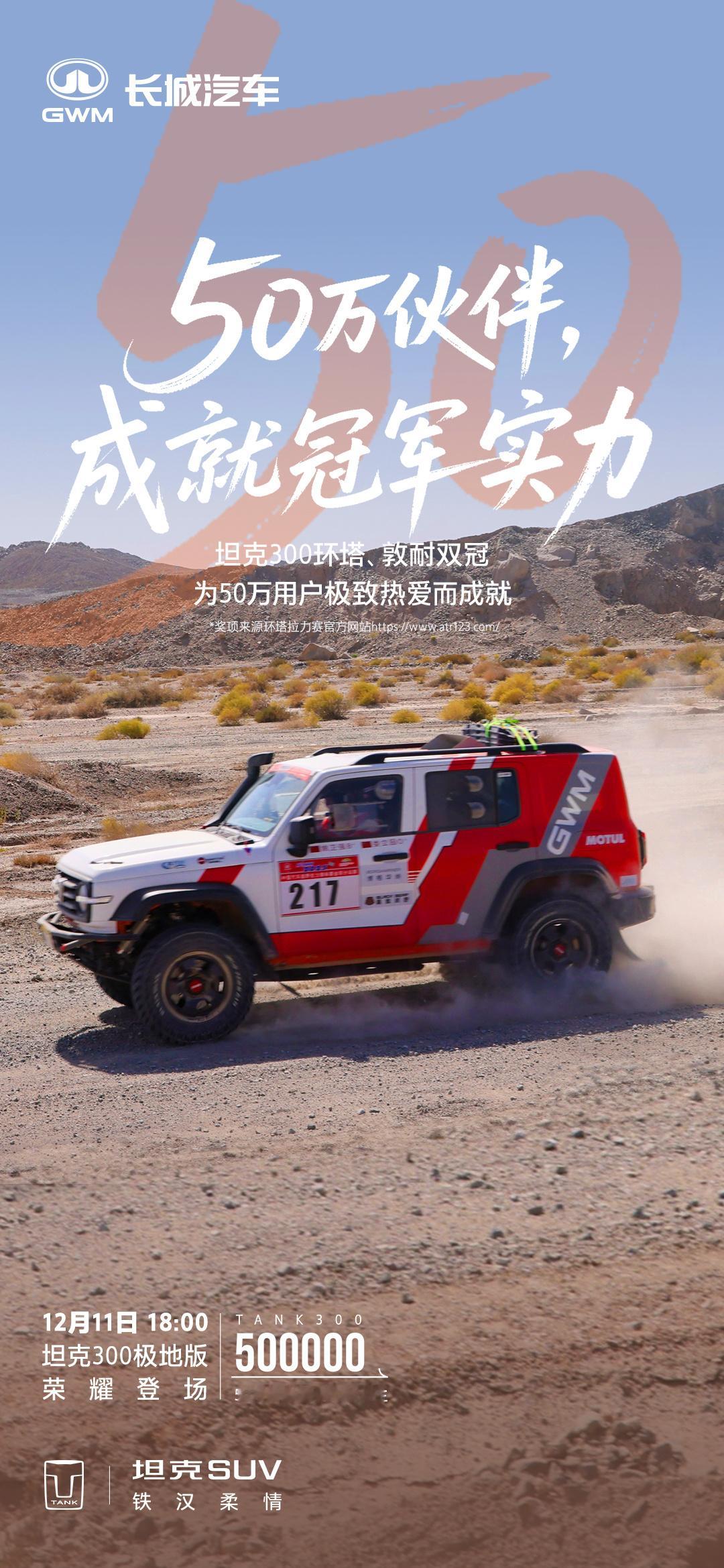 坦克300,因50万用户而成就!12月11日 18:00,坦克300极地版迎来上