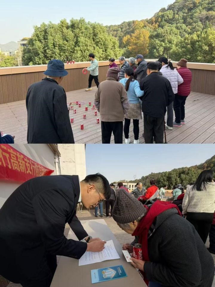 为弘扬中华民族敬老爱老传统美德,深化银社联动共建情谊,筑牢老年群体金融安全防线,2025年12月4日,兴业银行杭州高新支行携手杭州市西湖区社会福利中心,成功举办“敬老反诈游园会”。支行领导、员工代表带着满满的心意,与福利中心领导、工作人员及入住老人齐聚一堂,在趣味互动中传递关爱温情,在沉浸体验中普及金融知识。